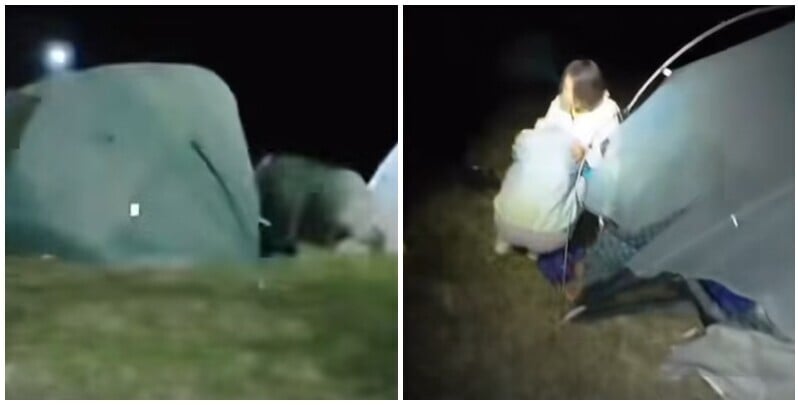 42秒影片可見於晚上時份營地有一隻野豬於帳篷陣內出沒,期間突然衝向一帳篷,將整個帳篷撞起翻倒。片段中可聽到在場男女以普通話驚呼,有男子提醒「掉了甚麼?快看一下」,並指野豬嗅覺靈敏,「帳篷不能放吃的」,有女營友指出自己沒有擺放食物。野豬及後離開。另一名穿露營裝束的女子受驚後慨嘆「怎麼辦?」,其後蹲在地上哭泣,由同行人士安慰。