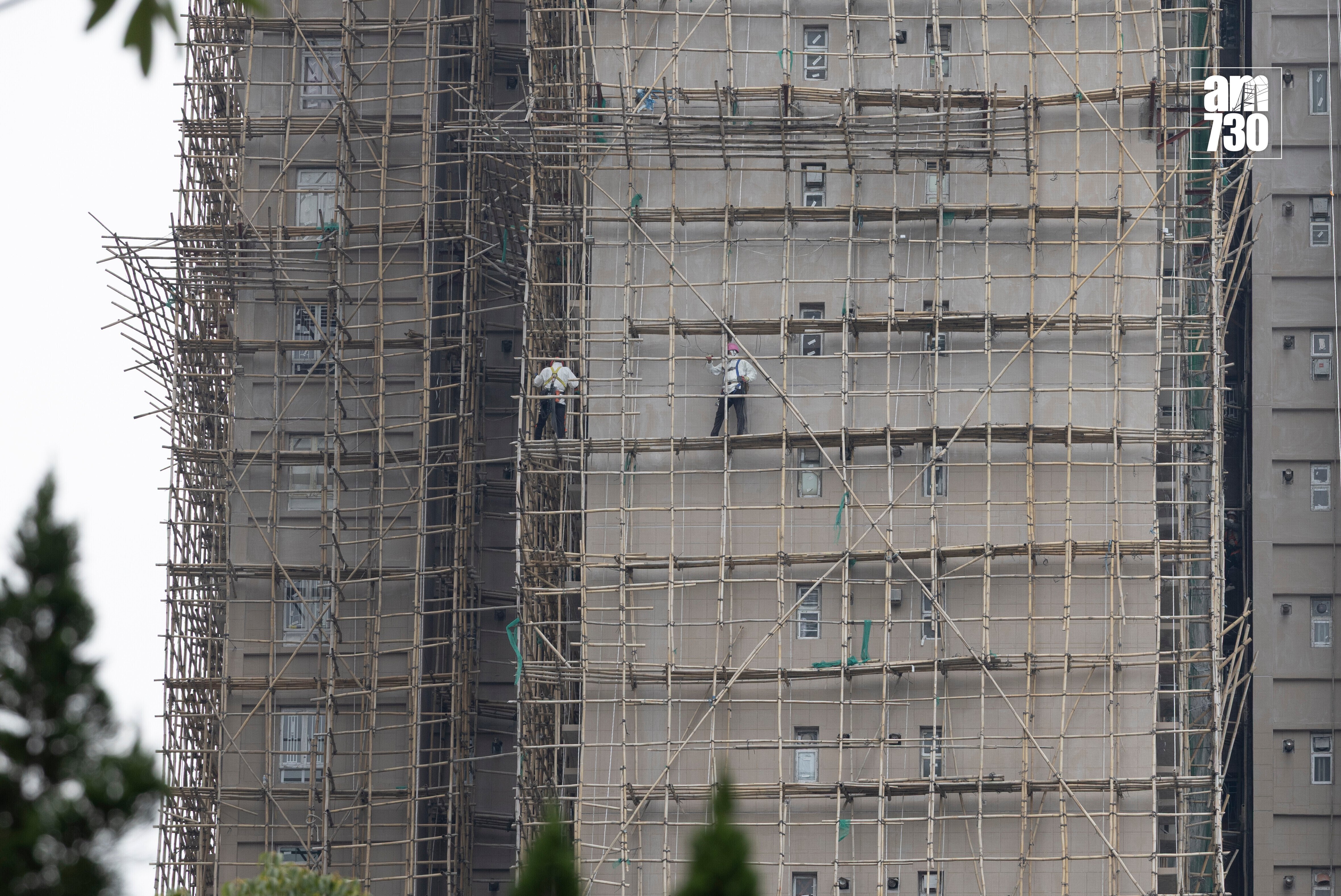 大埔宏福苑五級大火後樓宇情況。(蘇文傑攝)