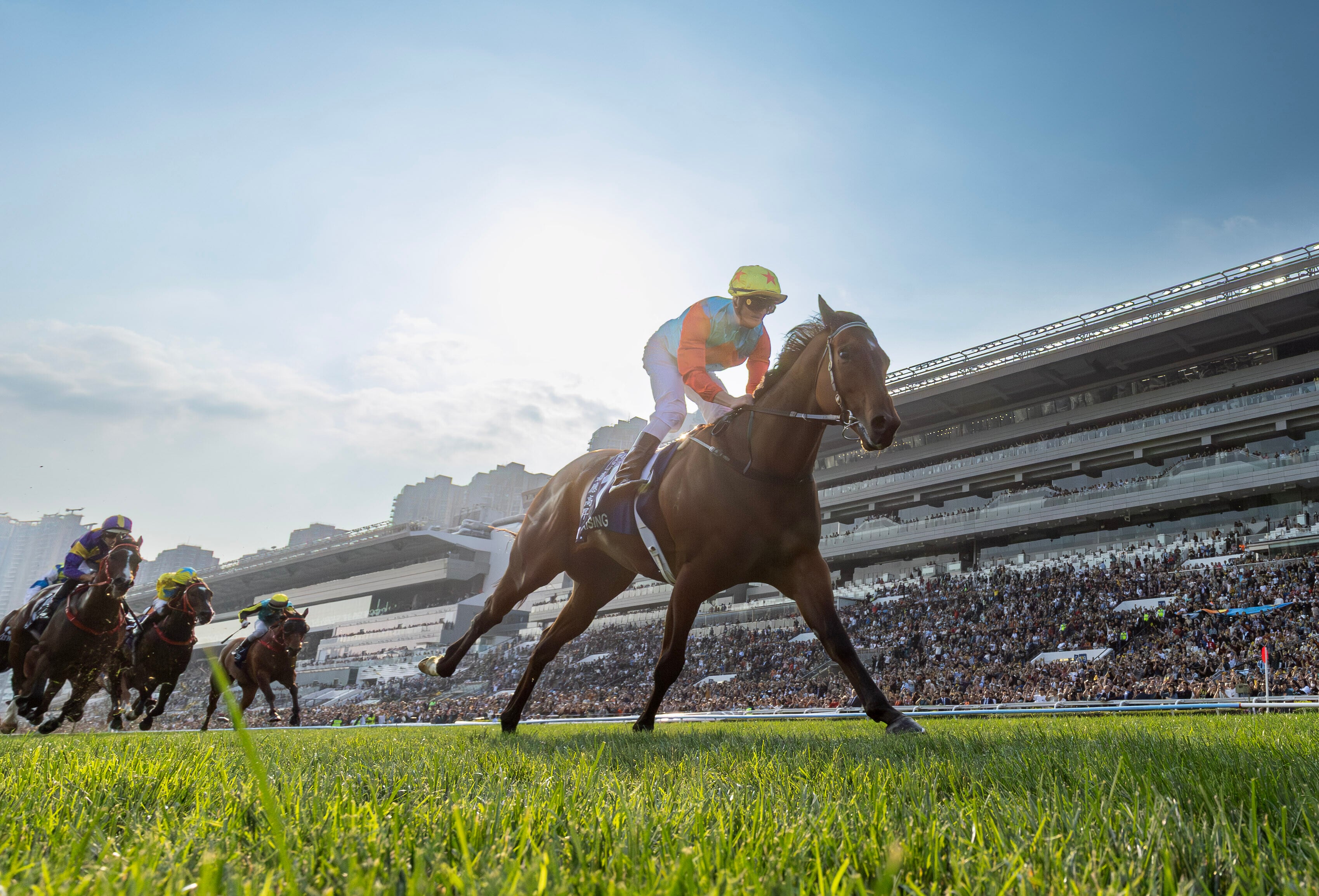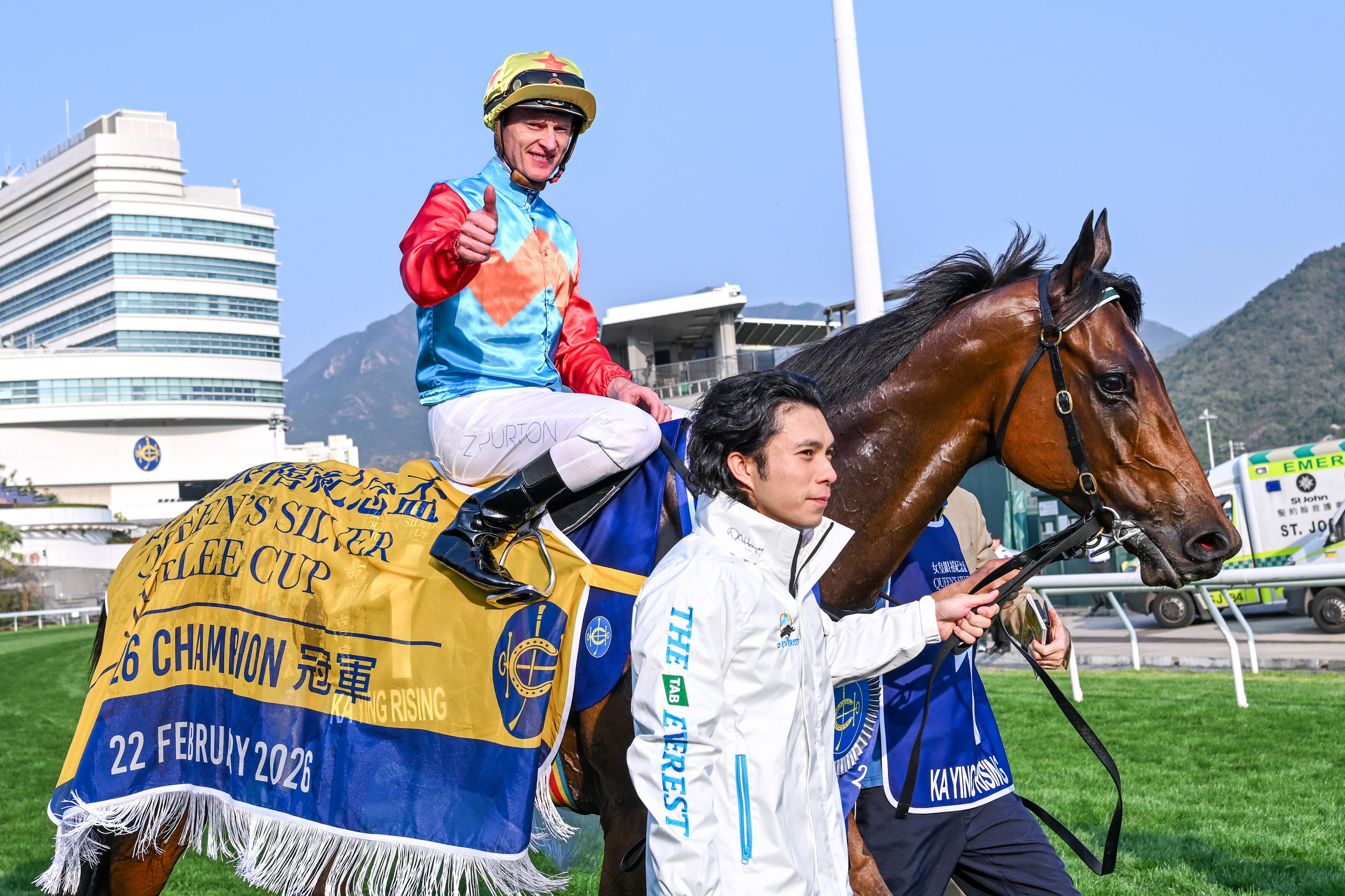 全球最佳短途馬「嘉應高昇」今(22日)在沙田馬場贏得一級賽「女皇銀禧紀念盃」(1400米),寫下歷史性18連勝。(馬會圖片)