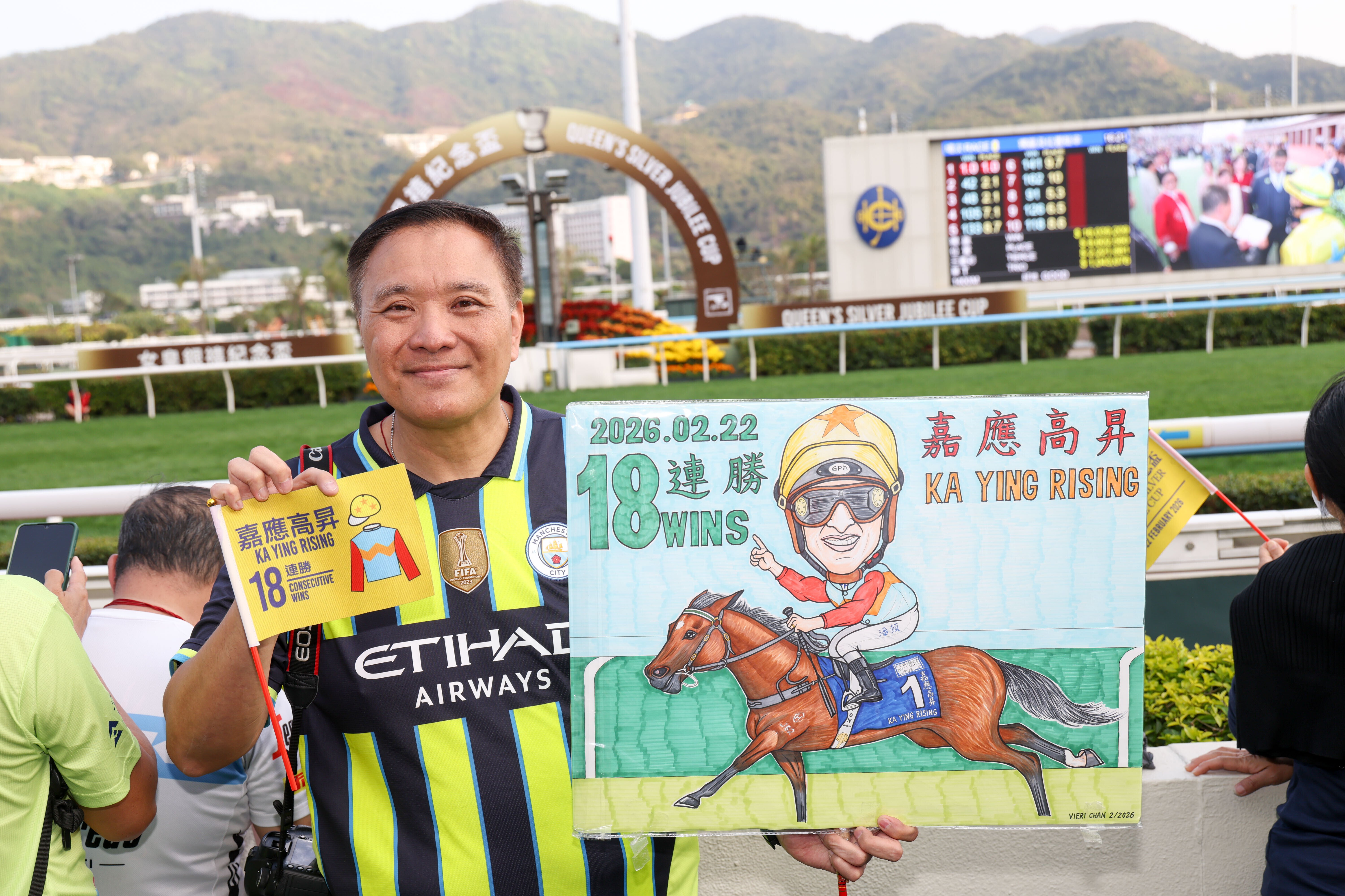 今天兩個馬場合共逾30,000人,包括逾6,100名旅客入場見證這歷史性時刻。50多歲本地資深馬迷陳先生,21年前曾目睹「精英大師」締造17連勝的輝煌時刻。他對「嘉應高昇」獲勝深感興奮:「從未想過有馬匹能打破『精英大師』17連勝的紀錄。『嘉應高昇』向世界展示無可匹敵的實力,甚至比『精英大師』更具王者霸氣。這足證香港馬王輩出,賽馬水平不斷提高。」