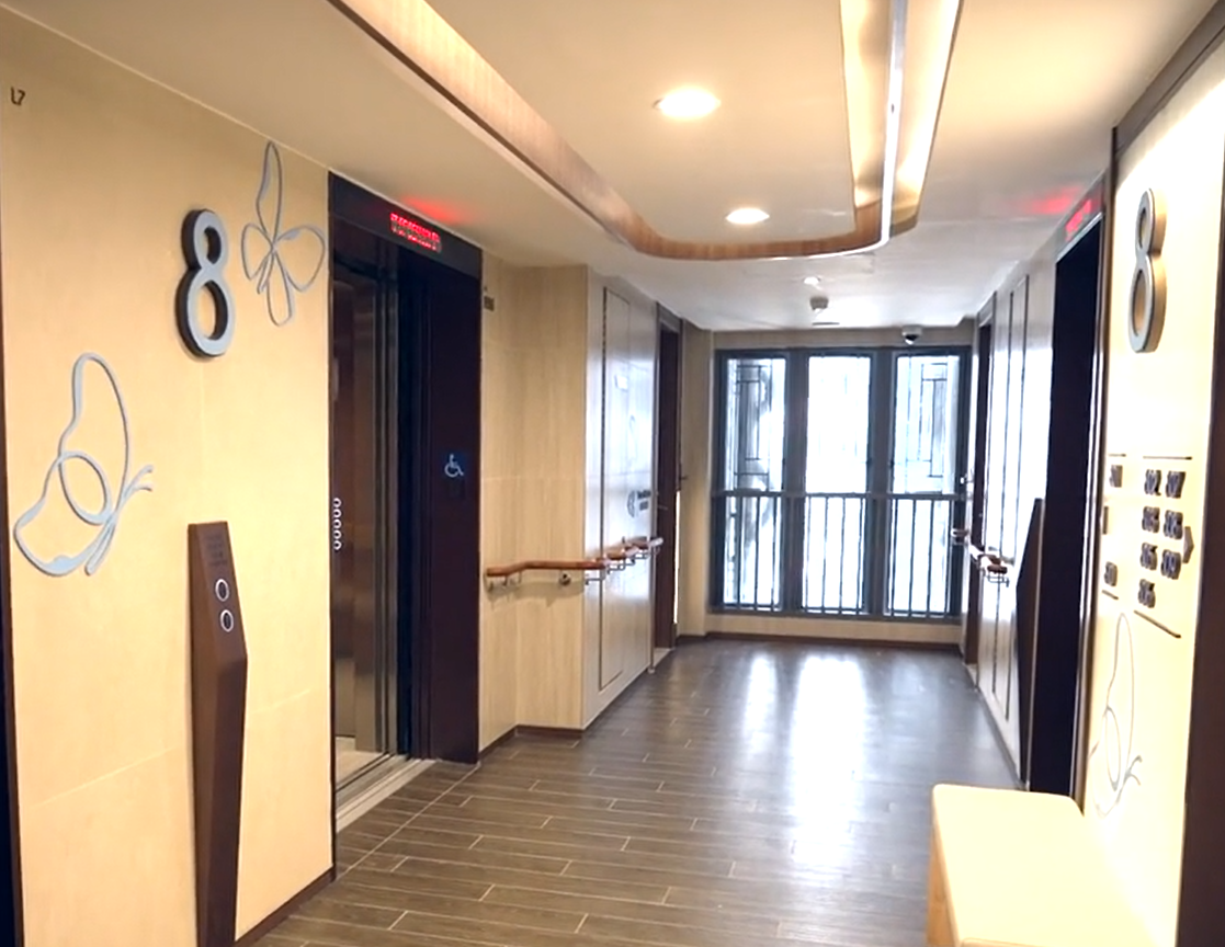 公共空間同樣處處體現關懷;不單升降機設座位和廣播系統,按鈕符合指定高度並帶光,主要公用通道則盡量消除門檻、減少樓梯,戶外休憩空間也提供足夠座椅和長者適用健身器材。