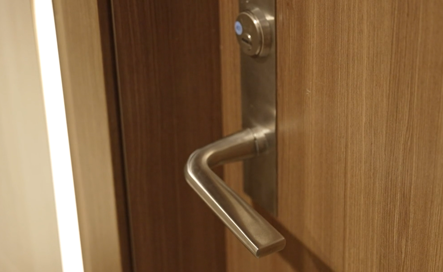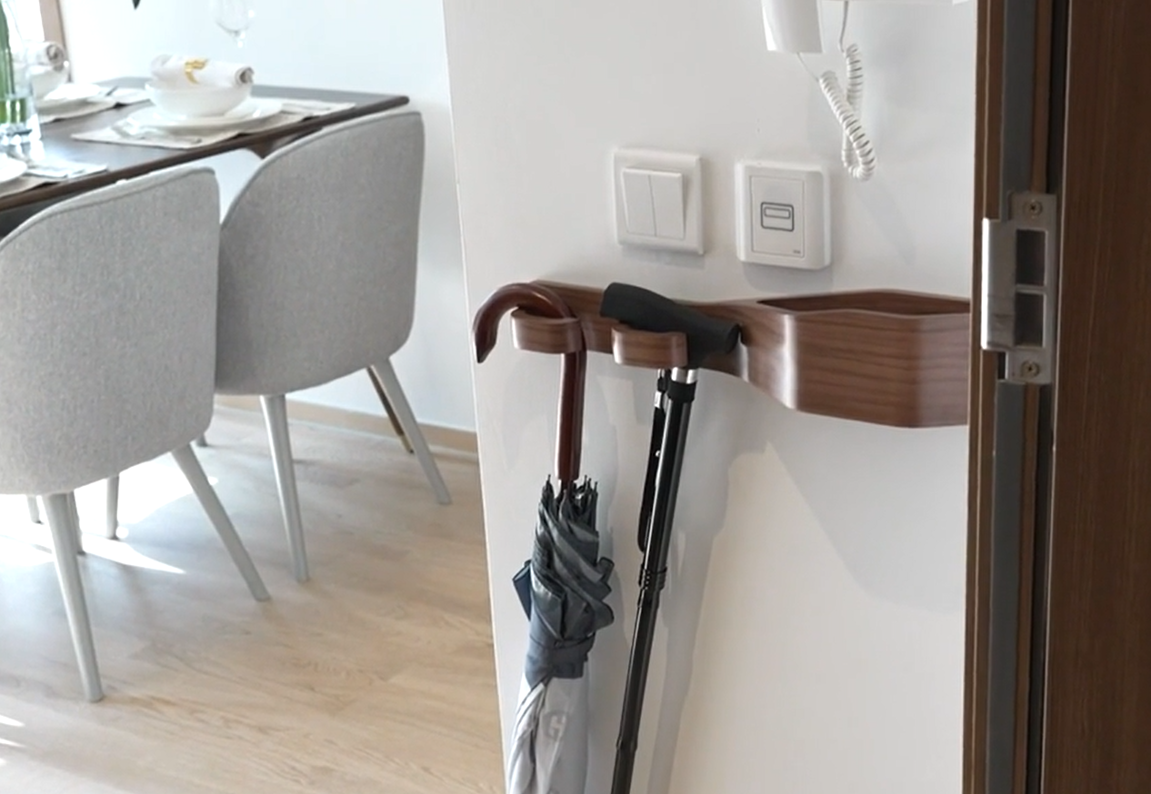踏入單位,電燈開關特意設於離地1至1.3米處,長者能輕鬆觸及;浴室鋪設防滑地板,水龍頭和門均捨棄球狀手柄,採用更適合長者使用的長手柄設計。房協助理總監(項目管理)黃偉業解釋:「這種手柄可減少手部扭動,對於手指和前臂肌肉退化的長者更為方便。」單位又設有智能樂齡緊急支援系統,確保長者遇突發狀況時能即時求助。