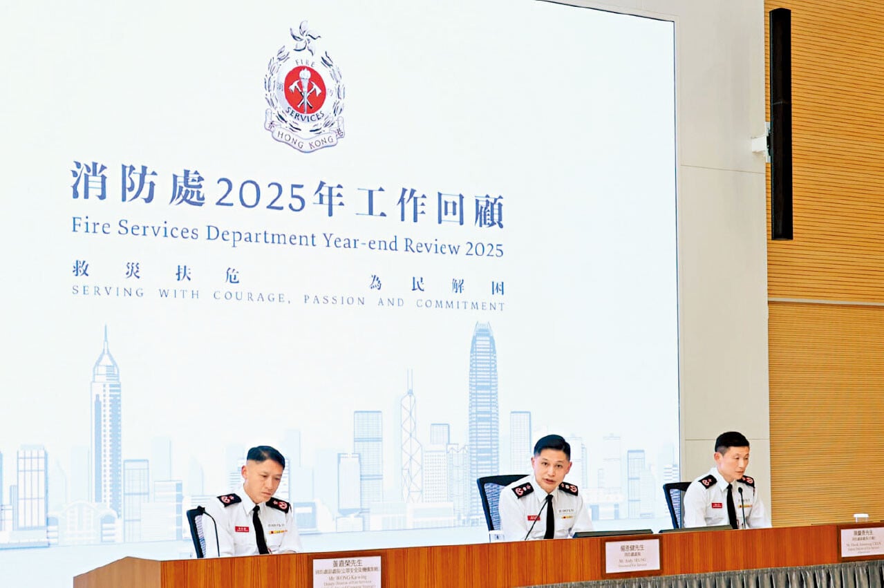 消防處昨回顧2025年工作內容,包括宏福苑大火後的跟進工作。消防處長楊恩健表示,希望透過修例,加強樓宇的消防安全管理。修例將包含3個方向,第一是當要關閉大廈消防裝置時,必須先得到消防處批准。他解釋,現時做法是先關閉設施,其後再通知處方派員檢查;修例後,業主關閉前要先獲批准,而關閉時須做足預設措施,才可申請。第二是將物管公司列為大廈消防安全的責任人,協助監管消防裝置。第三是針對常見的大廈消防隱患,例如楔開防煙門和阻塞走火通道,引入定額罰款。