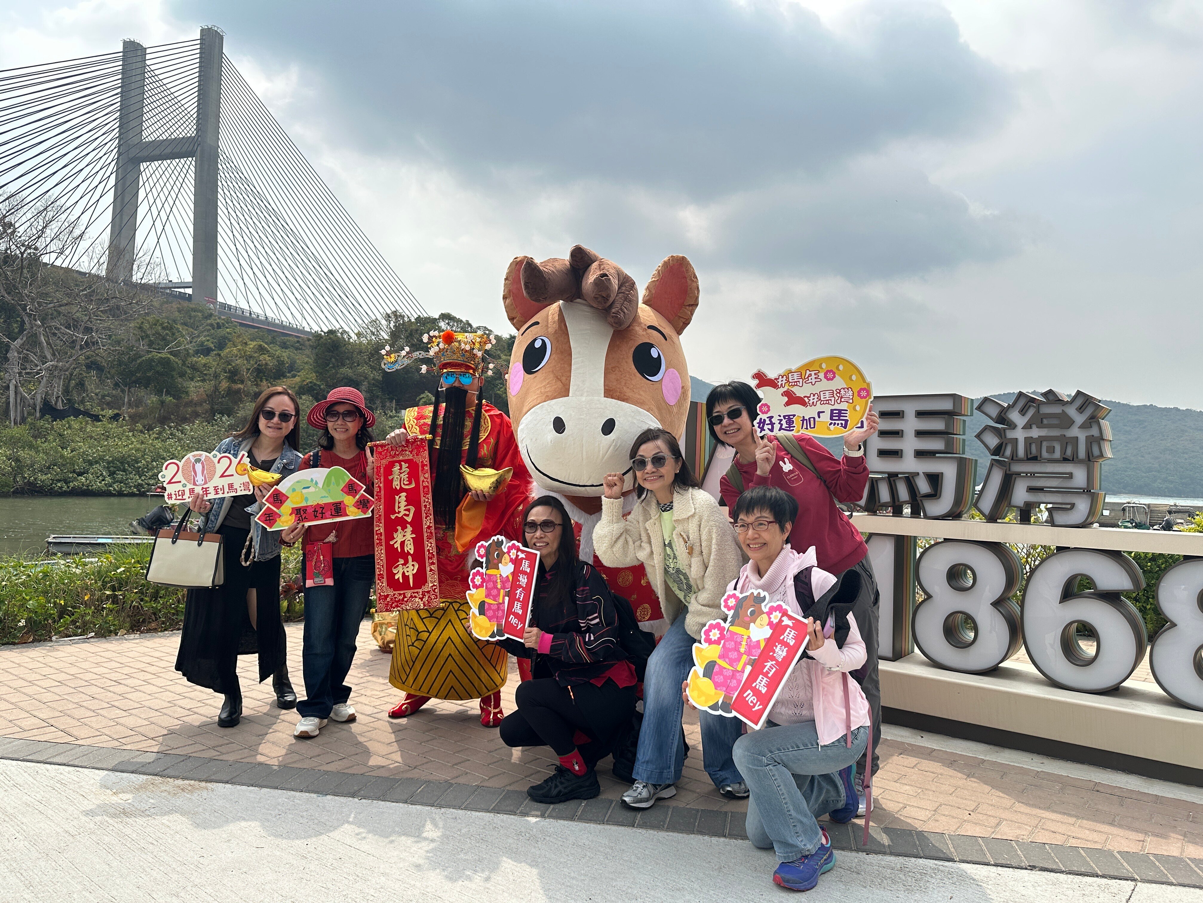馬年登高行大運,最好意頭莫過於來馬灣遠足,有山有水代表丁財兩旺,配搭特色賀年市集及活動,定必為遊客們帶來另類沉浸式「年味」!為此,馬灣1868在新春期間以「迎馬年‧到馬灣」主題,特別策劃一連串節慶活動。由寓意行大運的大嶺頭登山徑開始,到天后廟廣場接連上演的賀歲活動、街頭音樂表演及節日市集,成功吸引大量遊客來馬灣度新歲。另外,配合新春的「十二生肖」主題雕塑,分布於園區不同位置,與海岸景致、步道及公共空間相互呼應,連同大量熊貓裝置,讓遊客邊找邊打卡。馬灣公園有限公司租務部副總經理(推廣)陳潔儀Helen回顧,「大年初三,財神爺聯同可愛吸睛的馬仔吉祥物現身園區與大家近距離互動拍照,兼大派賀年朱古力金幣;到初四及初五,天后廟廣場、文創廣場及馬灣大街更變成『新春遊園・色彩派對』遊園市集,涵蓋手作藝品及節慶精品,讓大家一邊逛、一邊感受熱鬧喜慶的新春氛圍。」活動成功吸引不少訪港旅客首次踏足馬灣賀歲,當中揮春拓印工作坊,及以馬為主題的趣味遊戲如跑馬仔挑戰等深受歡迎,大家都玩得不亦樂乎。「歡迎更多協作單位趁馬年遊馬灣,感受香港本地遊的魅力。」Helen補充。