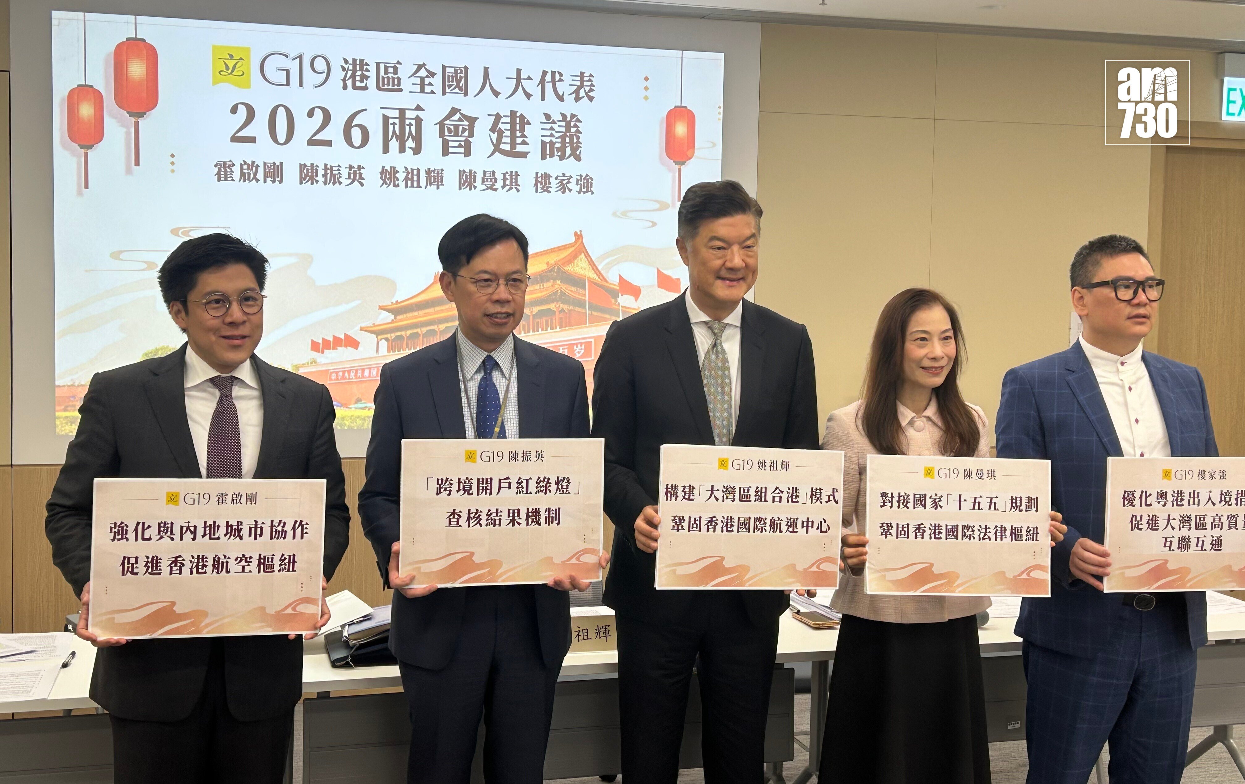 第十四屆全國人大四次會議將於下月5日在北京召開。立法會G19聯盟5名港區全國人大代表今日舉行記者會,提出多項建議,內容涵蓋提升香港國際金融中心、創科中心、航運中心、航空樞紐及法律樞紐發展,協助內地企業來港「拼船出海」,促進大灣區融合及深港協作等,緊密對接國家「十五五」規劃,發揮香港優勢,助力國家發展。