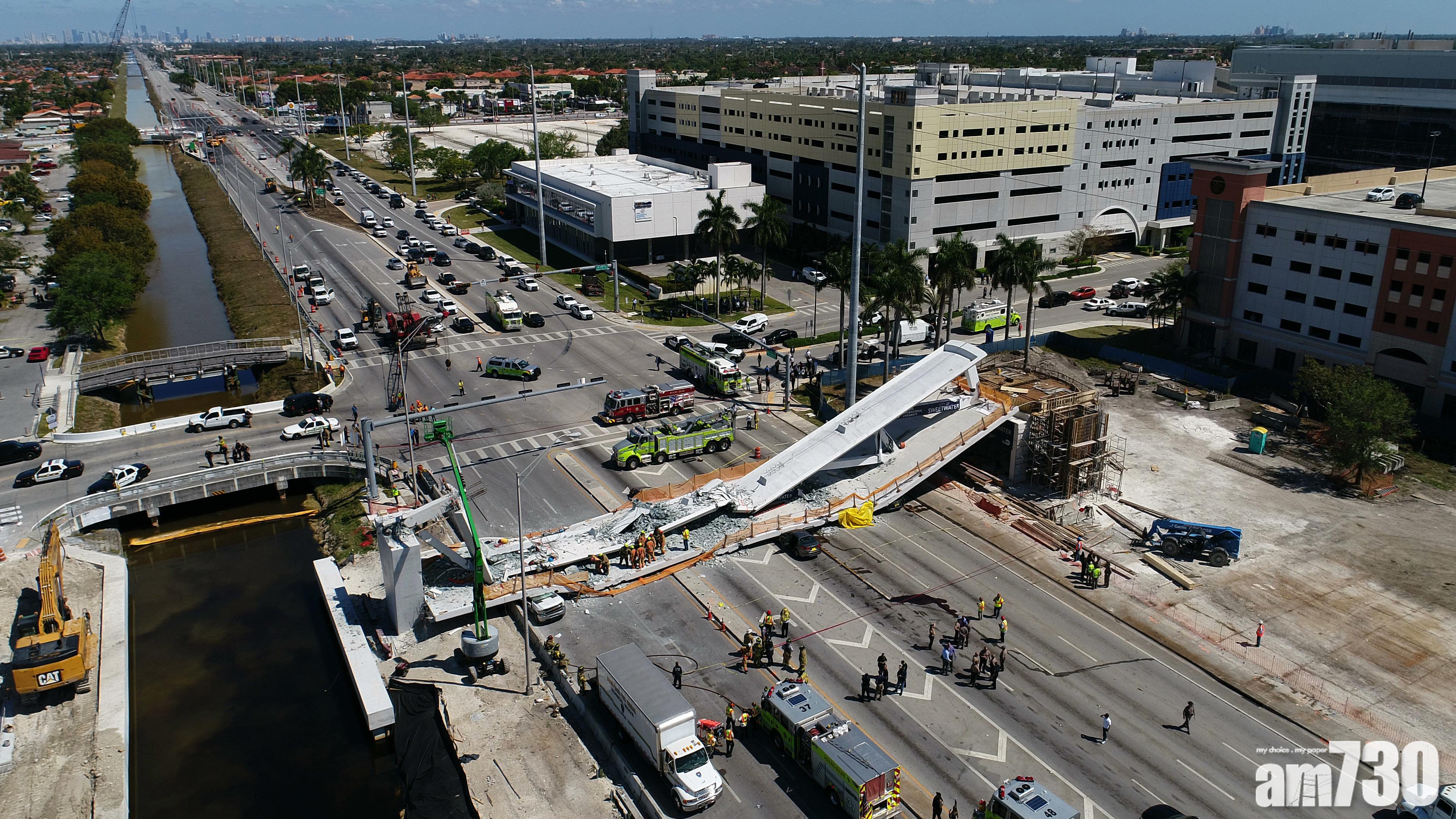 美國佛羅里達州邁阿密巿一條興建中的行人天橋倒塌,壓住多輛車,當地警方指,最少4人死亡,另外有9名傷者。