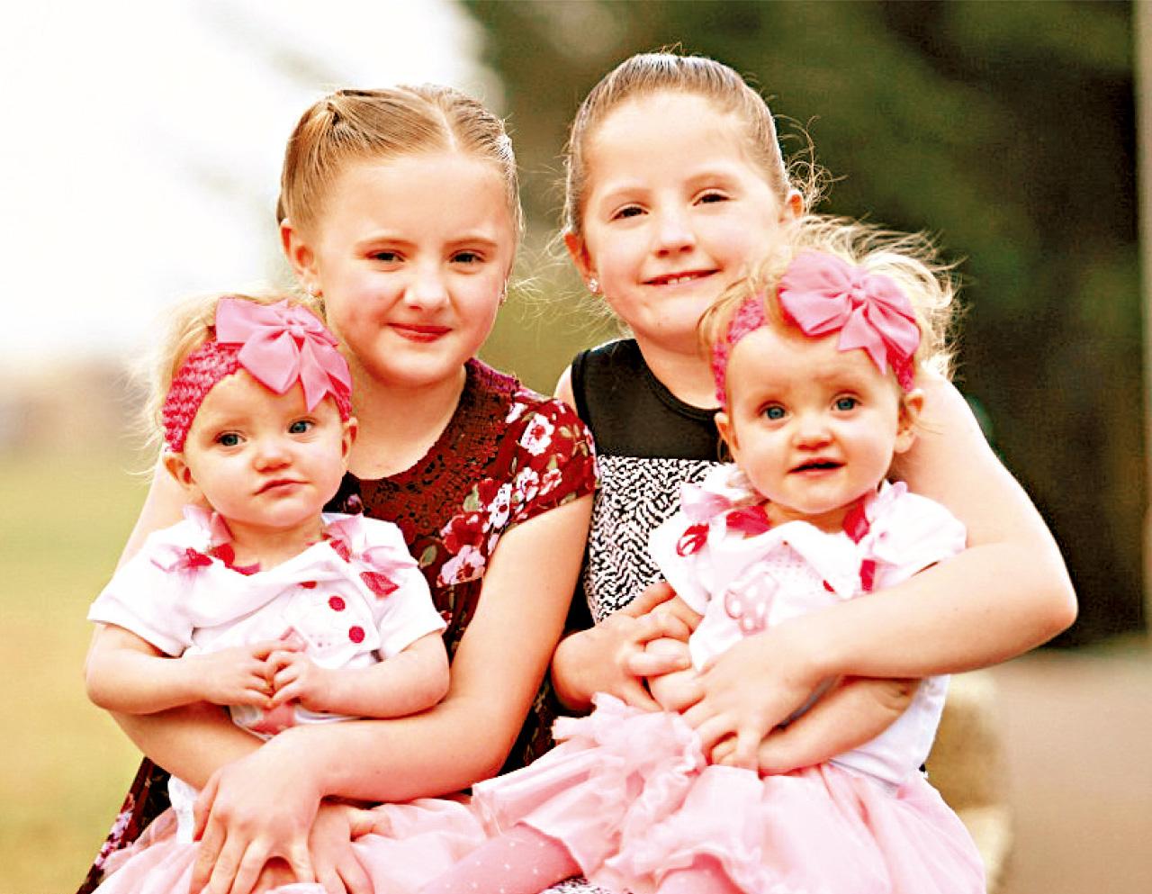 9歲孖姊Charlotte和Isabelle屬異卵、1歲孖妹Erin與Leah是同卵。