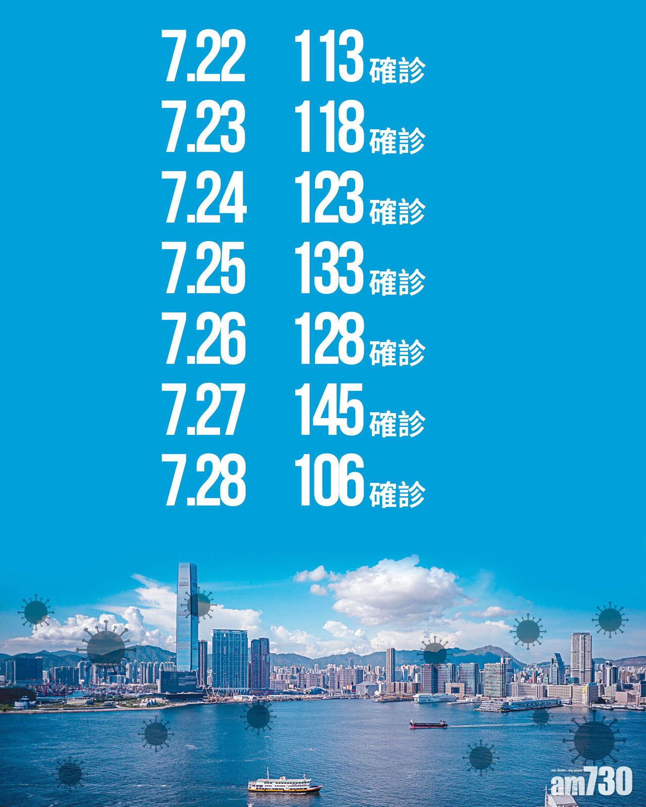 新型冠狀病毒疫情持續,本港昨新增106宗確診個案,連續第七日破百,再多一名85歲港泰男院友離世,累計23人死亡。近百宗本地感染個案,部分與早前聚會或院舍有關,而當局首次公布的堅城(梁氏)建築感染群組至今有15名員工或家屬確診、兩人初步確診,正調查病毒經辦公室或旗下工地傳播。據了解,堅城有項目主任曾巡視承建的山頂加列山道地盤,約60名地盤員工已獲安排病毒檢測,暫未見大型爆發。