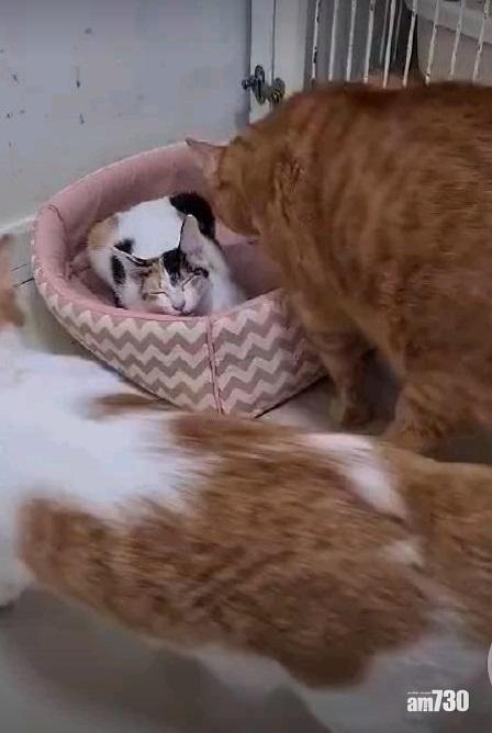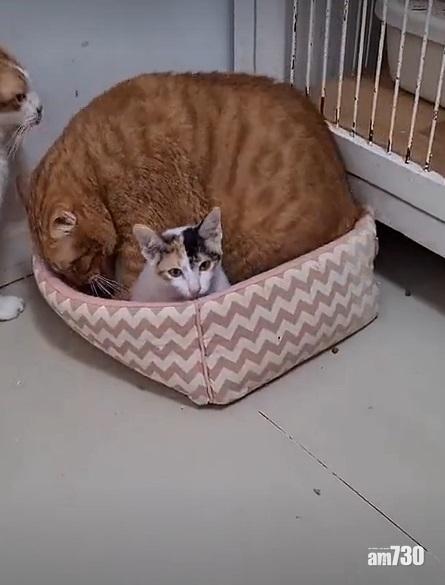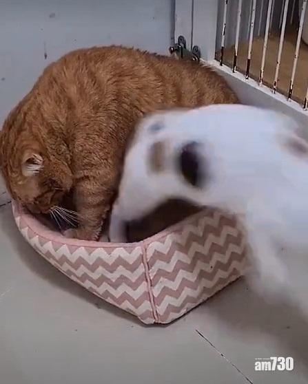 網上熱話|肥貓強佔花貓窩 網民︰貓界「鵲巢鳩佔」