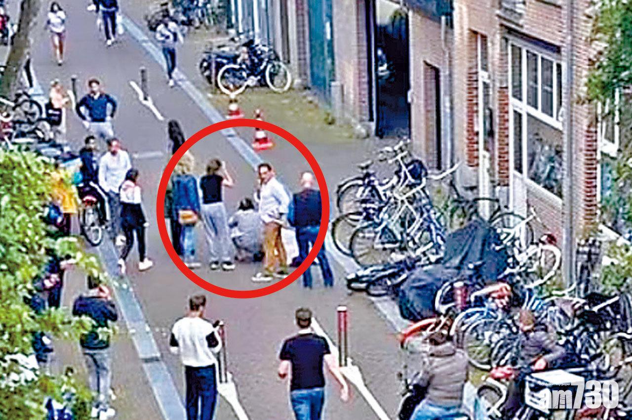 德弗里斯中槍倒地後,途人圍著他(紅圈)。(互聯網)