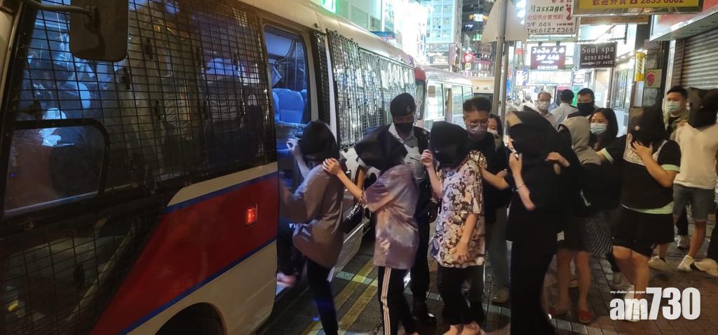 警破灣仔銅鑼灣16個賣淫場所,拘68人。(警方提供)