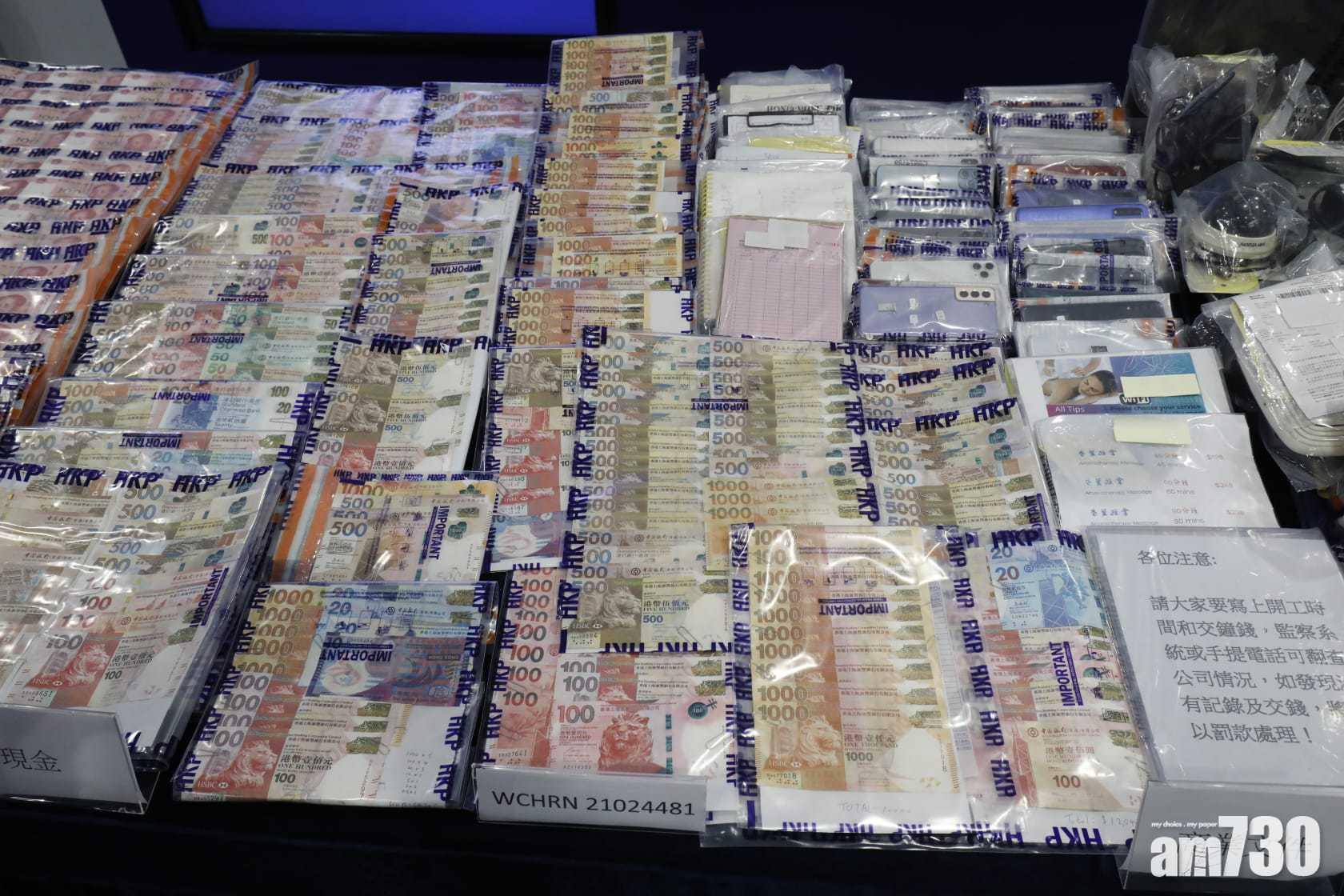警方行動中檢獲超過50萬元港幣及外幣,相信是賣淫所得的收入。(林俊源攝)