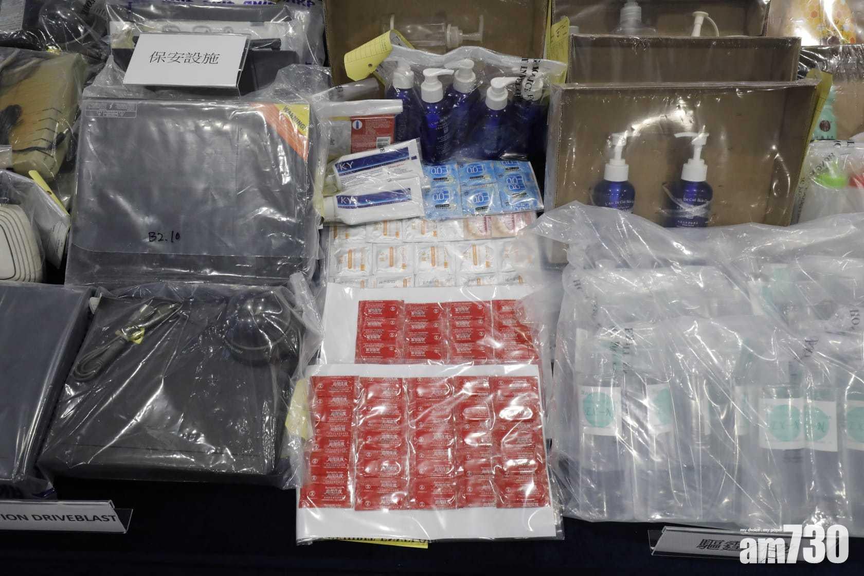 警方檢獲的涉案賣淫物品。(林俊源攝)