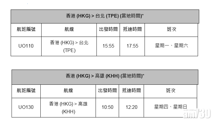 HK Express下月底開辦前往台北高雄航線 (新聞稿截圖)