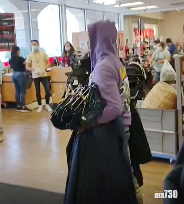 美國加州洛杉磯竟然有人在光天化日下公然盜竊,完全目無法紀。網上瘋傳片段可見兩名男子周一在百貨商店TJ Maxx,雙手拿著大堆衣服,其中一人更背著一個裝滿東西的大袋,就這樣在客人和店員的眾目睽睽下,施施然步出店門。拍片的人說,要看他們有幾離譜,跟著他們到停車場,見到兩名竊匪就這樣上車離開。