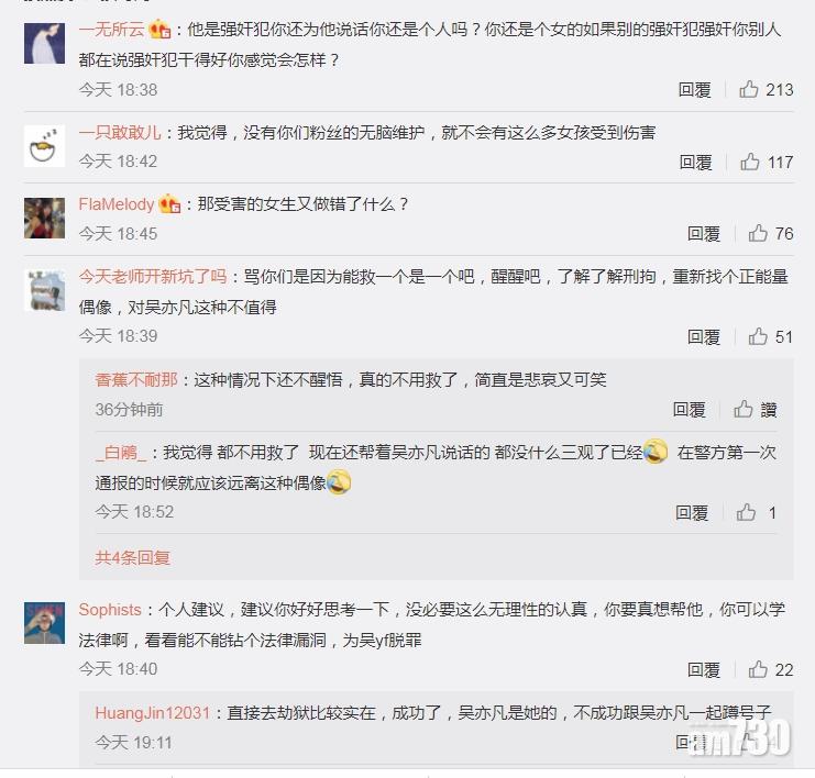 有吳亦凡粉絲表示,因為為偶像說話而被其他網民攻擊。