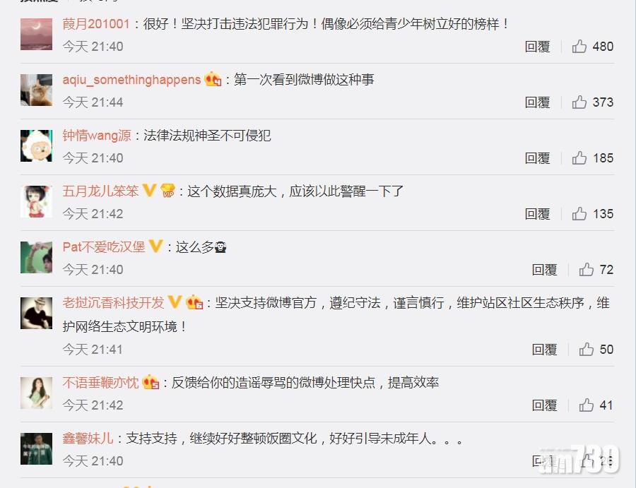 微博管理員強調,「堅決遏制非理性行為,堅決處理極端言論」,並嚴肅處理借機尋釁滋事、攻擊政府機構、惡意行銷蹭熱點、惡意洗地等違規帳號。有微博網民指,「第一次看到微博做這種事」,並表示支持「繼續好好整頓飯圈文化,好好引導未成年人」。
