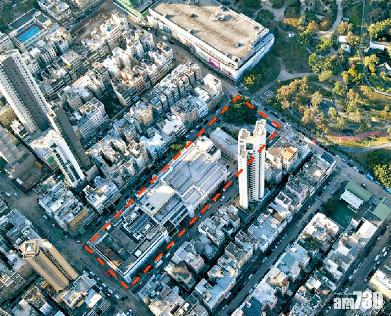 市建局將研究易地重置九龍城街市等社區設施(紅色框)。(市建局提供)