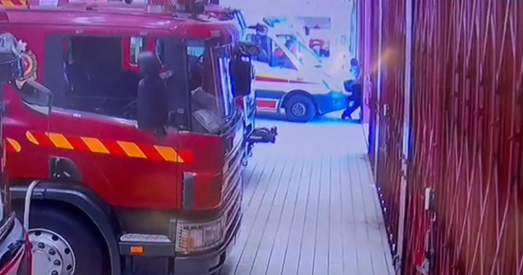 從網上片段可見,該輛救護車突然在消防局內溜前,附近的救護員見狀立即衝往車前,嘗試以身軀擋停救護車,惟最終未能頂住救護車,反遭夾在救護車和牆壁之間,由消防局內其他人員救出。