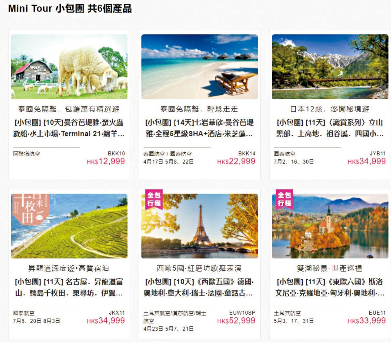 縱橫遊6個小包團旅遊目的地包括泰國、日本及歐洲,價錢約1.3萬元至5.3萬元,包往返香港飛機、當地住宿景點行程。袁振寧提醒,除旅行社會提醒各地入境條款,消費者仍須留神及有心理準備,形容「今日見的條款聽日會變」;若當地要求入境須有核酸檢測陰性證明,要留意認可的機構名單。