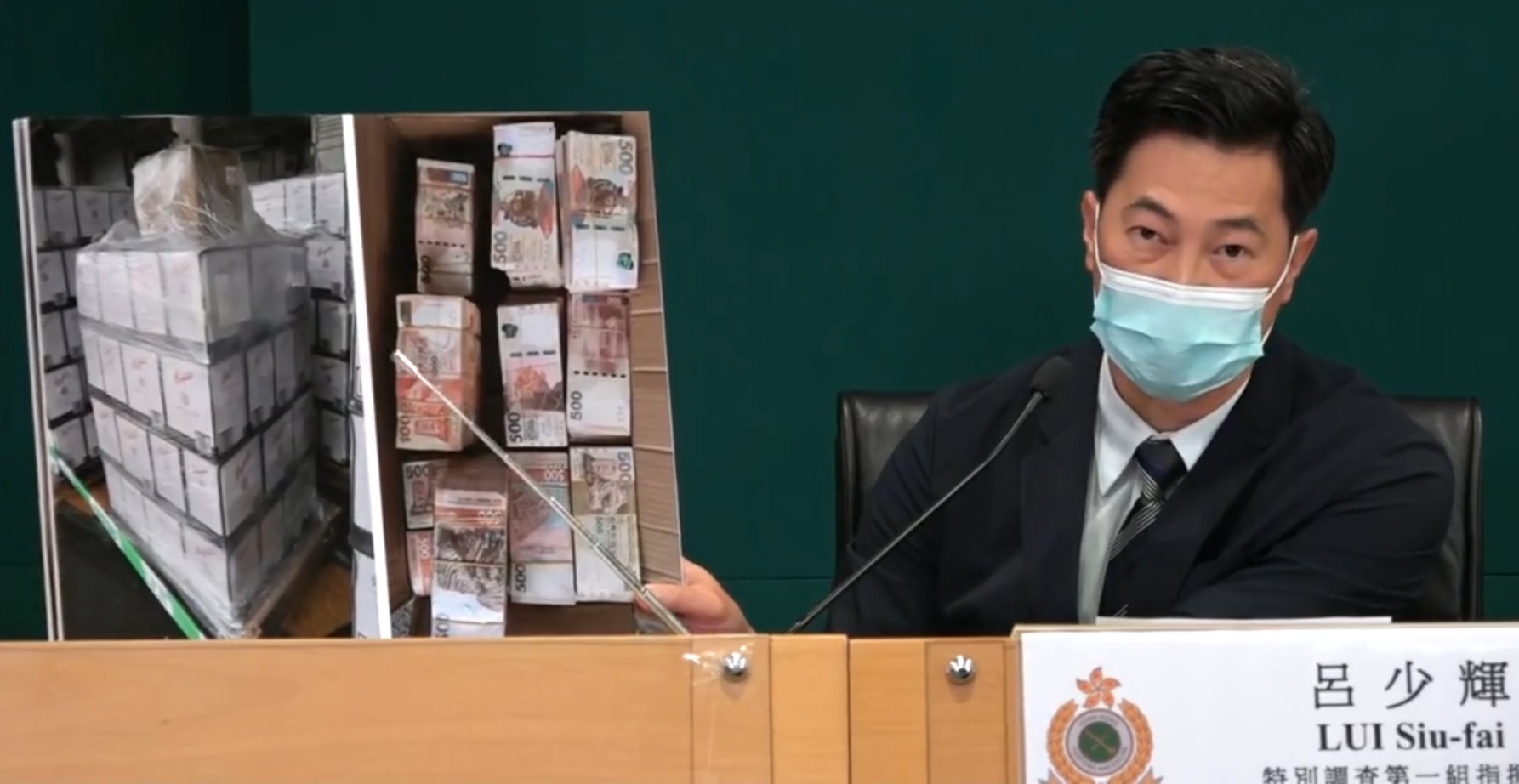 港澳海關首截獲內河船涉偷運逾二千萬現金等逾億貨物。(直播載圖)