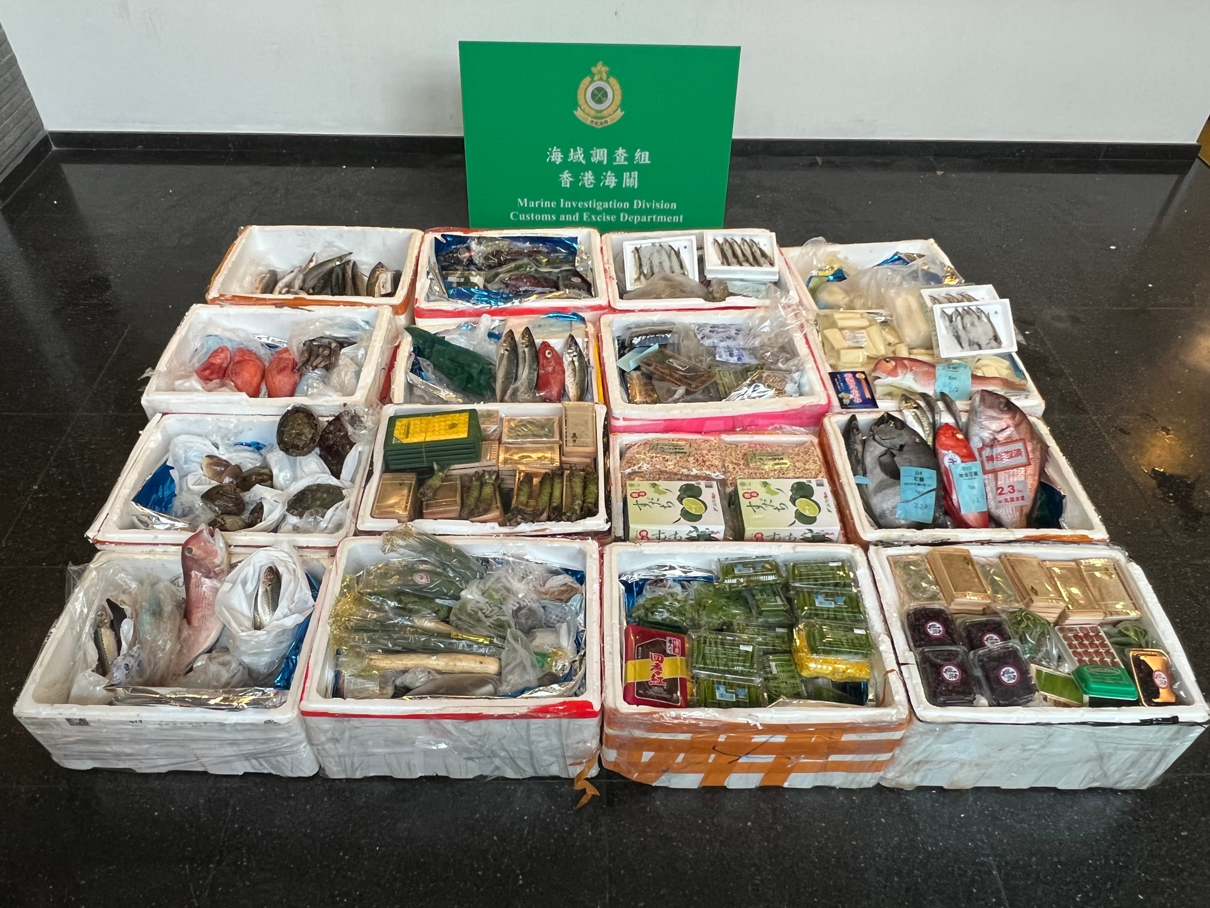 海關今日(27日)進行反走私行動,在東涌一帶水域偵破一宗涉嫌利用快艇走私的案件,檢獲約272公斤懷疑走私高價食材,估計市值約54萬元。