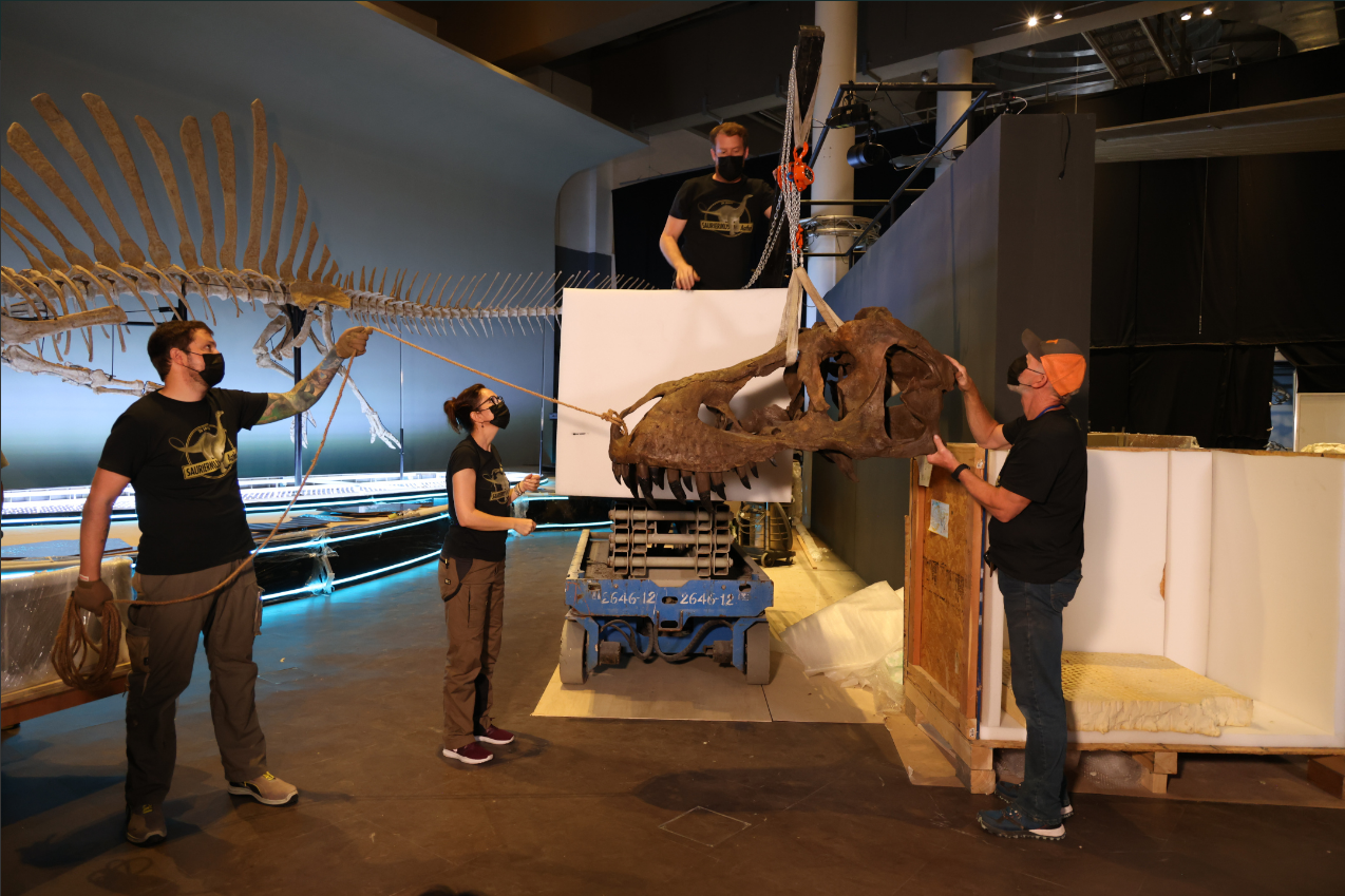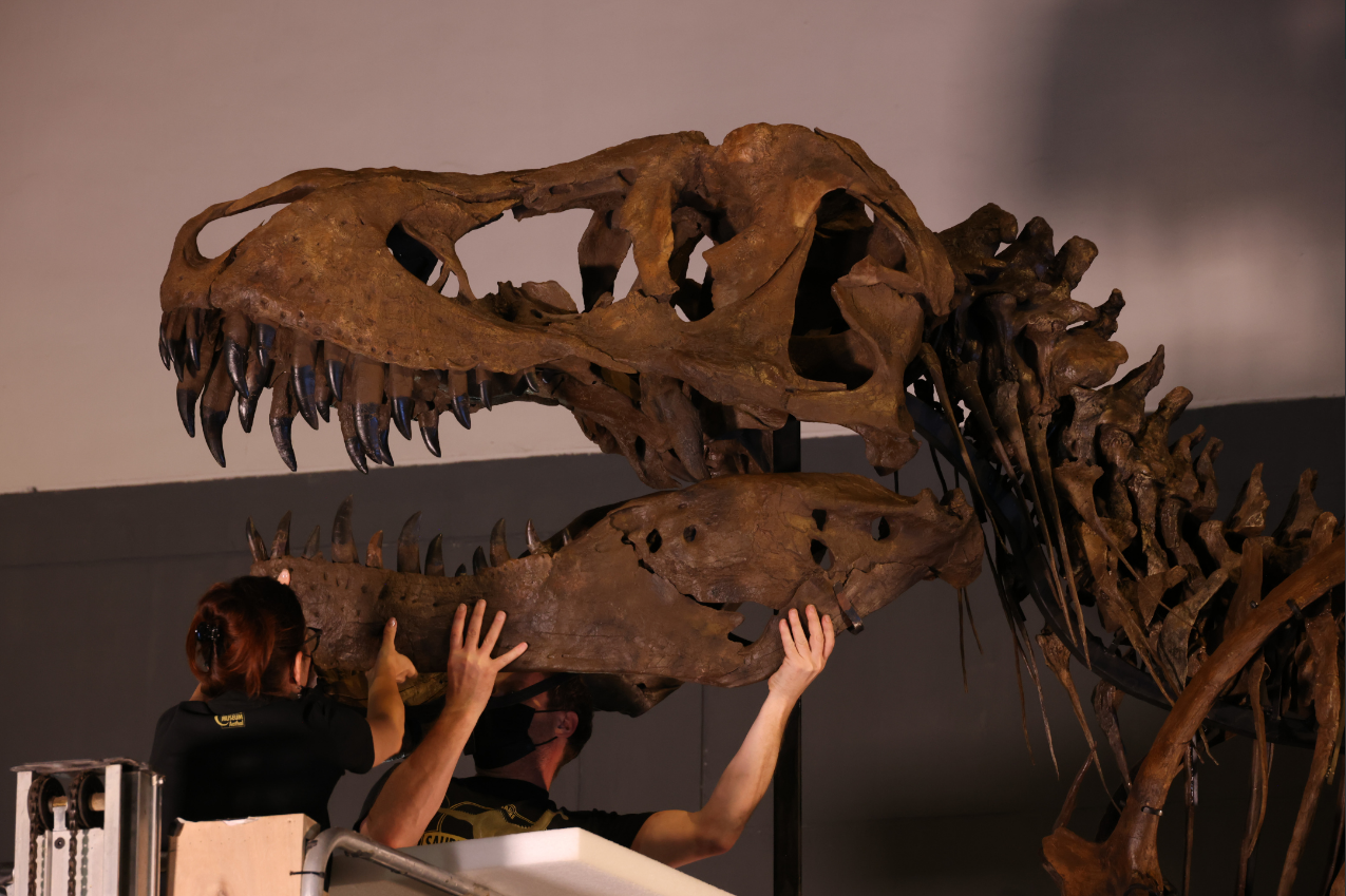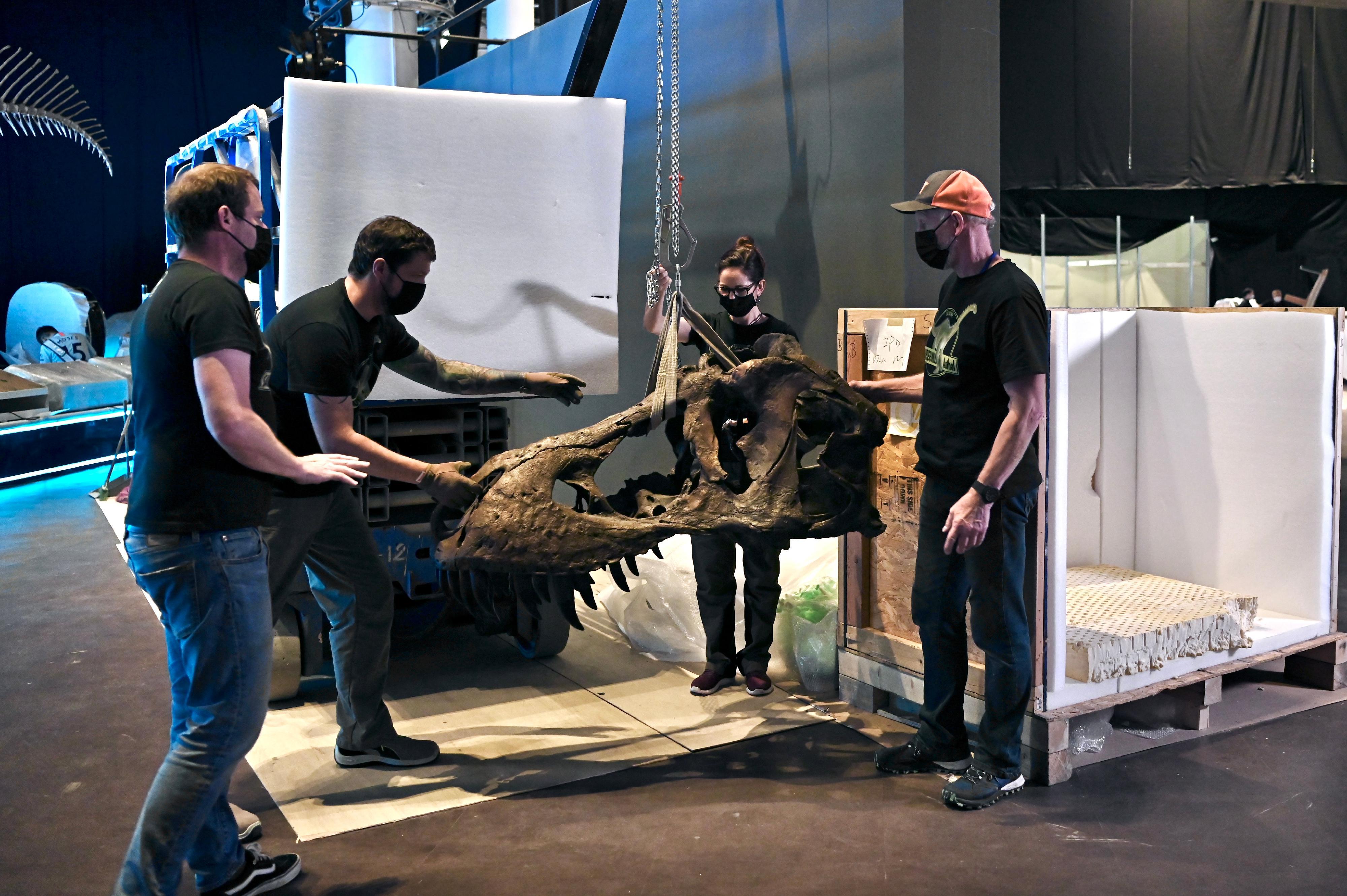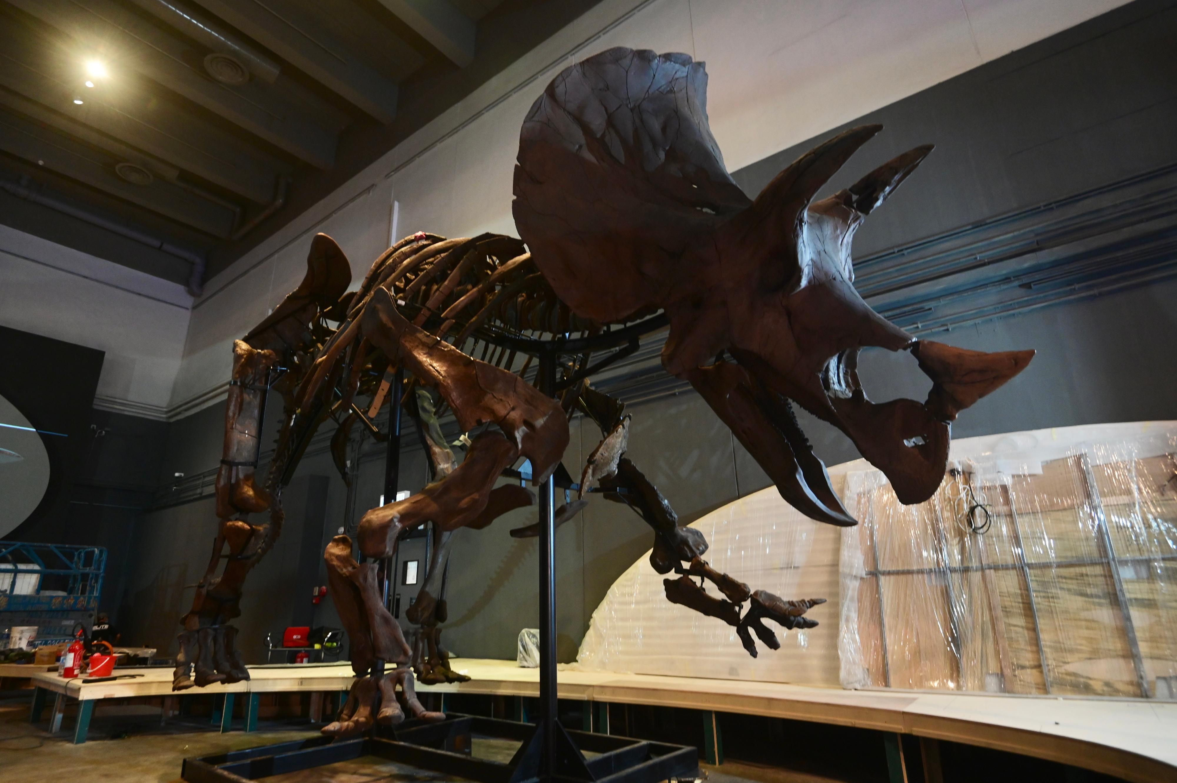 為慶祝香港特別行政區成立二十五周年,香港科學館7月8日起舉行大型恐龍展覽「香港賽馬會呈獻系列:八大‧尋龍記」,展出八組最具代表性、來自恐龍盛世的化石標本。載着恐龍化石和復原模型等展品的文物箱已運抵香港科學館,館方隨即開箱、安裝展品和進行布展工作。