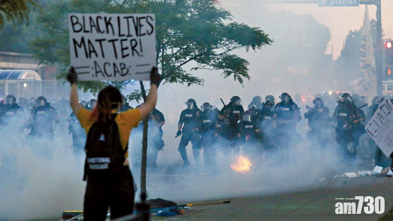 明尼阿波利斯市為這場全美示威起點,示威者向警員舉起「黑人的命也是命」標語。(路透社)