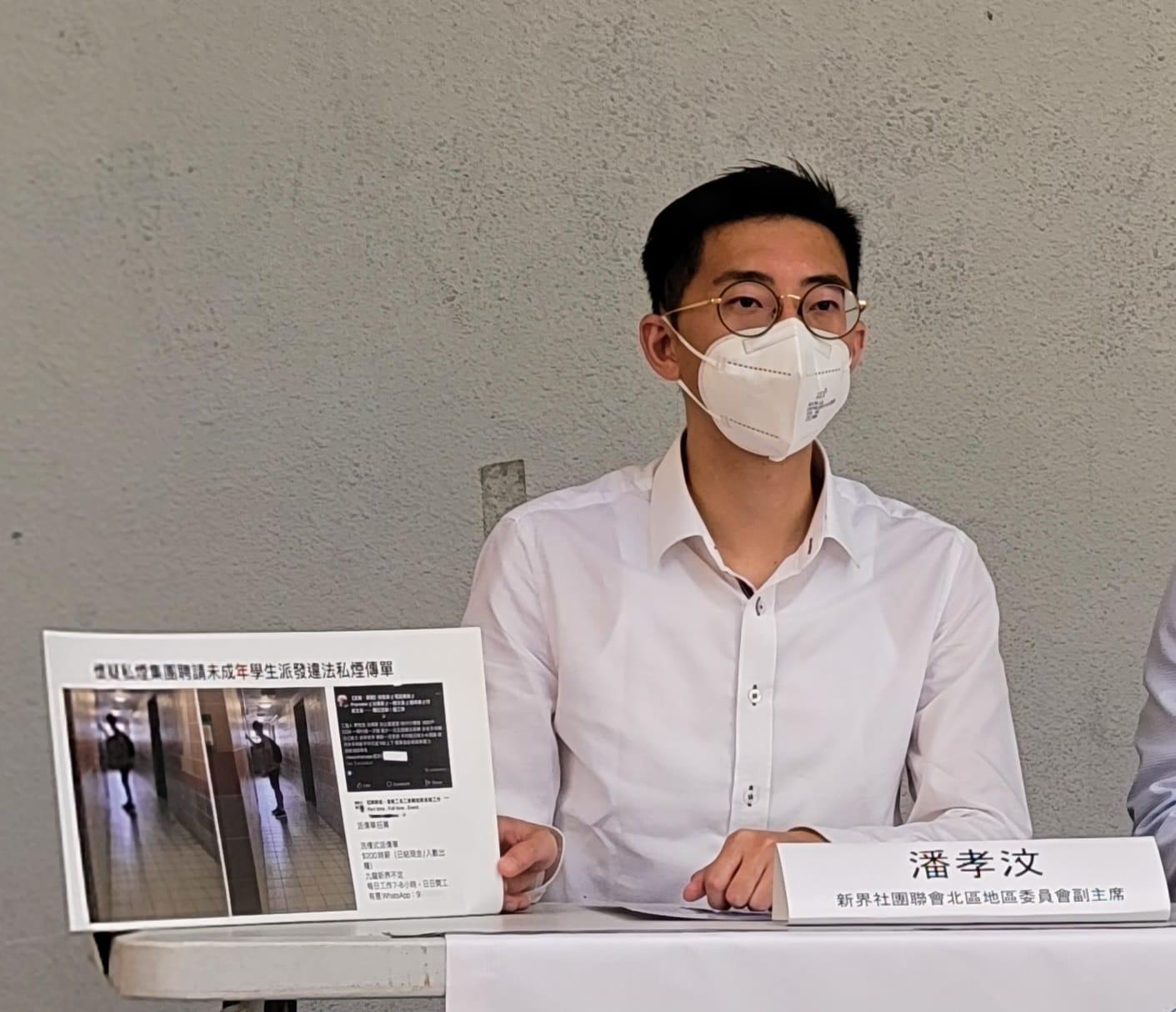 潘孝汶指,街坊目睹疑似未成年學生派發違法私煙傳單。