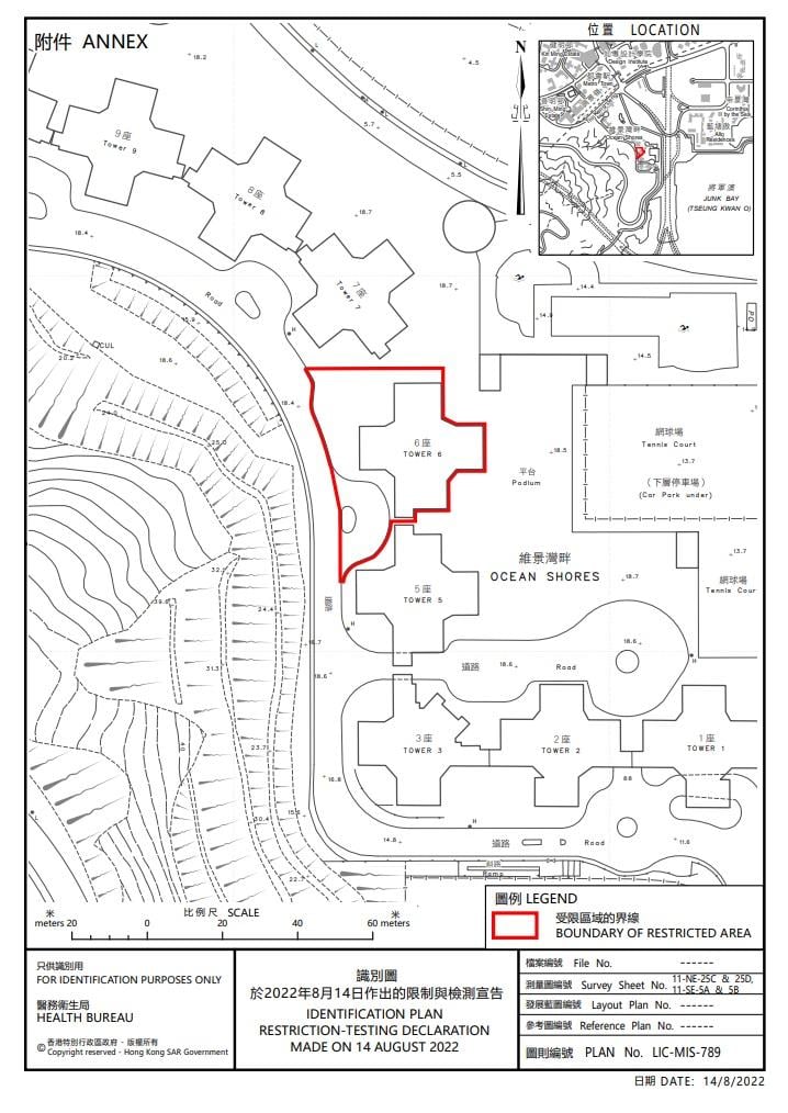 • 維景灣畔第6座:下午5時起圍封,居民需要於今晚11時前檢測,行動目標明日約中午12時完成