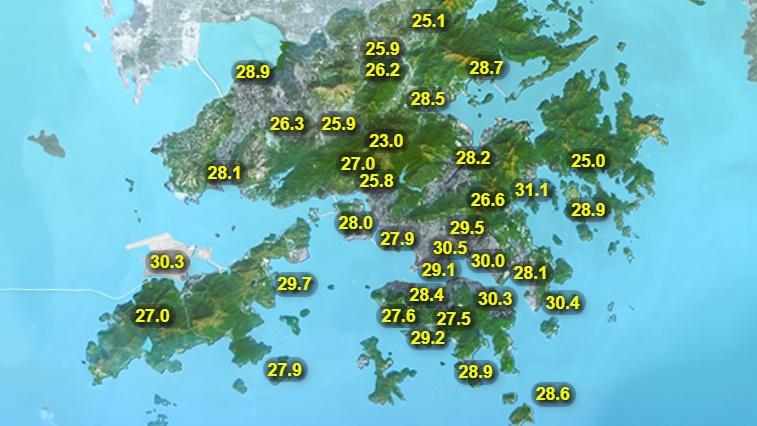 天文台又指,一股乾燥的大陸氣流會在本周為華南帶來持續酷熱及晴朗的天氣。(香港天文台)