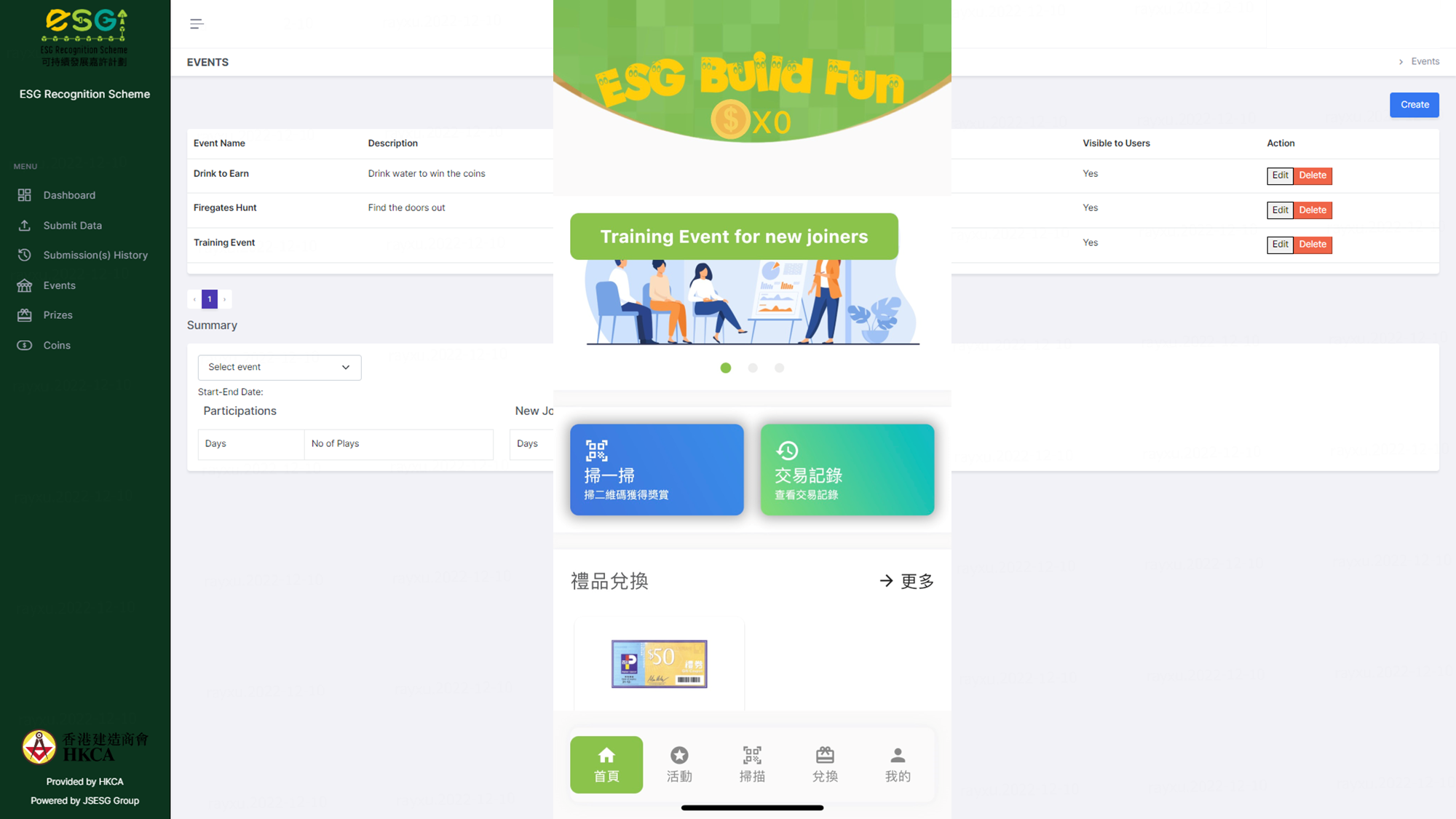不同職位員工工友也可參與,商會推出「ESG職FUN獎賞」手機應用程式,提供豐富獎品鼓勵不同職位員工及工友參與ESG相關活動,可藉收取「金幣」兌換健康用品、運動禮券、樂園門票、甚至電動車等,獎品總值超過200萬元。