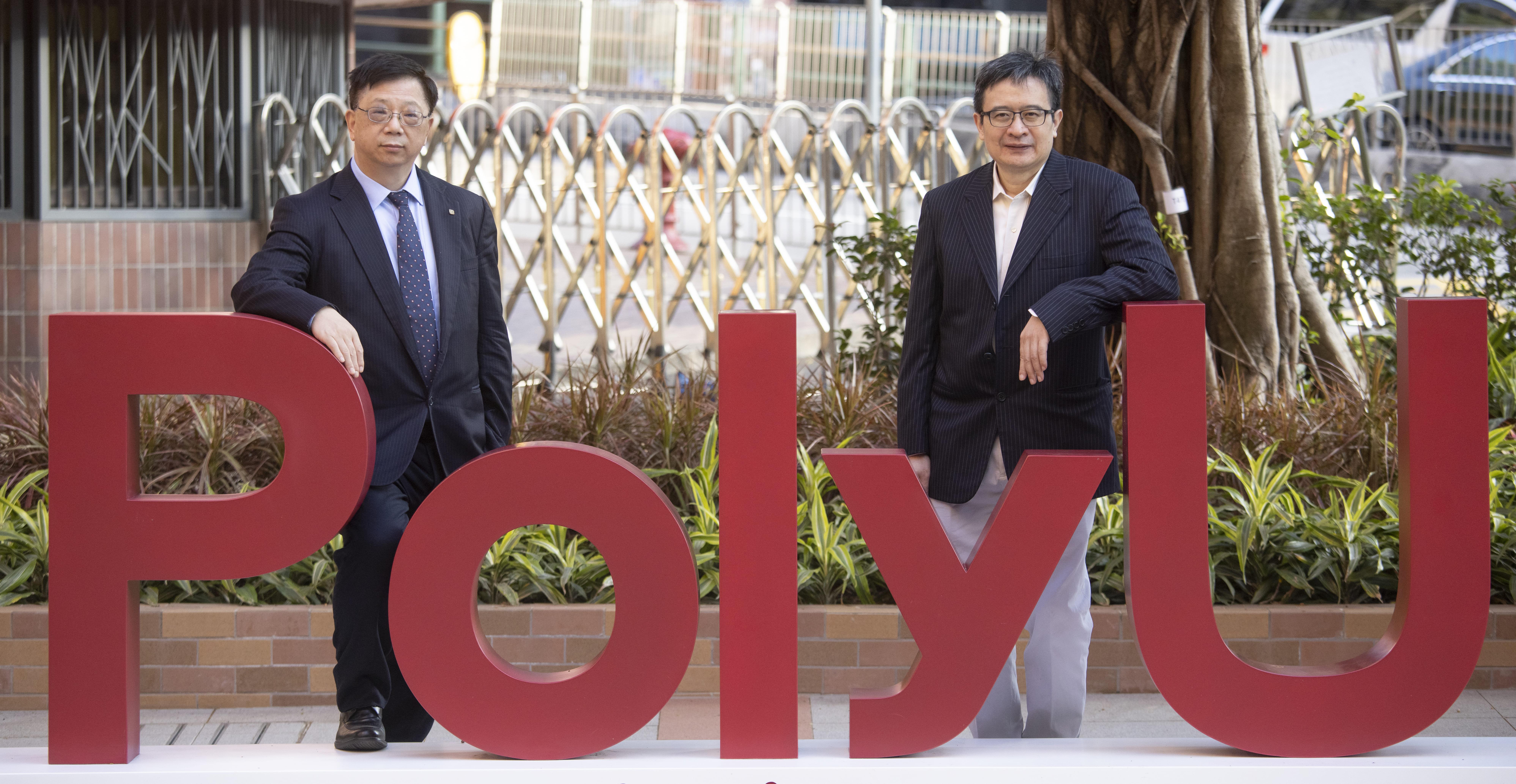 香港理工大學應用數學系講座教授及系主任孫德鋒(左)與講座教授楊彤(右),分別榮獲研資局頒發2022/23以及2020/21「高級研究學者」名銜。