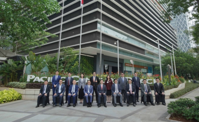 行政長官李家超近日率團訪問東盟三國,先訪新加坡,再到印尼及馬來西亞,周三(26日)訪問團就參觀富衛集團﹙FWD﹚於雅加達的總部Pacific Century Place,李家超更獲FWD創辦人李澤楷及董事會主席馬時亨接待,一行人更於總部大樓前合影。