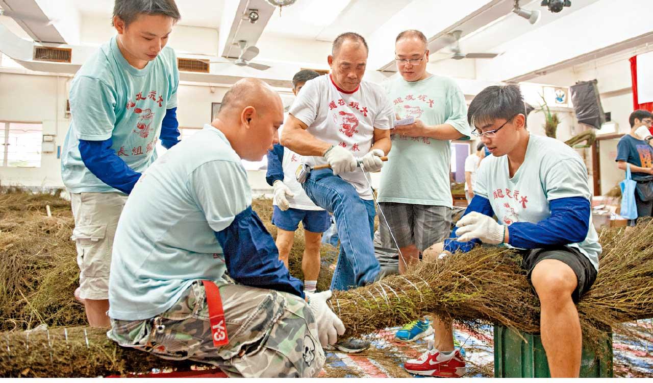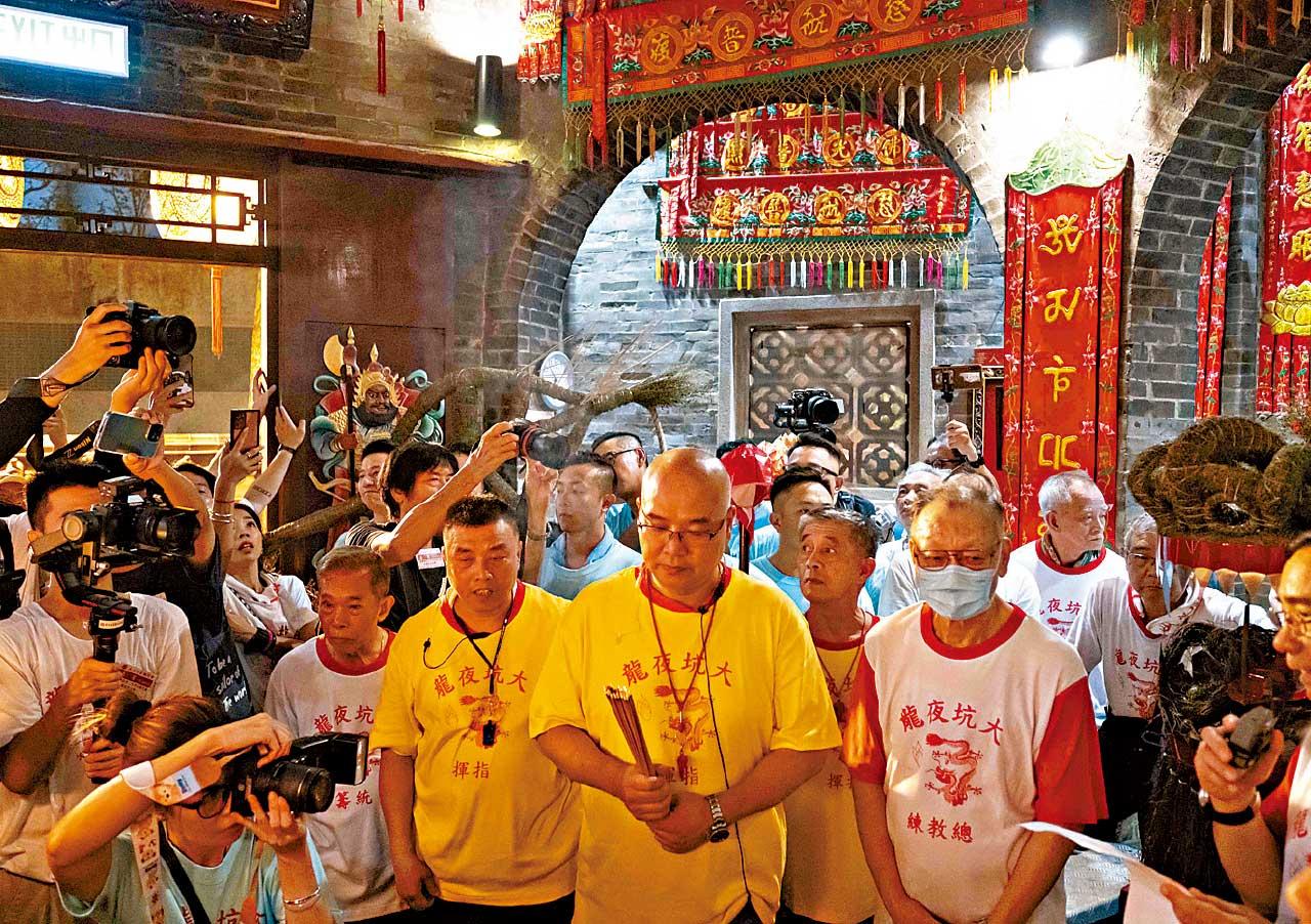 每年慶賀中秋最熱鬧的活動,必定是大坑的舞火龍;因疫情停辦了三年的大坑舞火龍,今年復辦,一連三晚的舞火龍活動,吸引大批市民到場觀賞。大坑舞火龍已有130多年歷史。相傳舞火龍可以驅趕瘟疫,保合境平安。大坑居民每年會紮作新龍,在農曆八月十四至十六日,一連三天進行舞火龍活動。紮作新龍工序繁複,需大約一個月合眾人力量才能完成。龍頭及龍尾以藤枝作骨架,龍身則由一根長67米、塗上防火漆的粗繩纜製成,龍身分32節,每節以一根竹竿支撐。藤架及繩纜上要紮上厚厚的珍珠草,並用鐵線固定,用來插香枝。龍鬚則由榕樹氣根紮成。 (作者為文物保育專員蔣志豪)