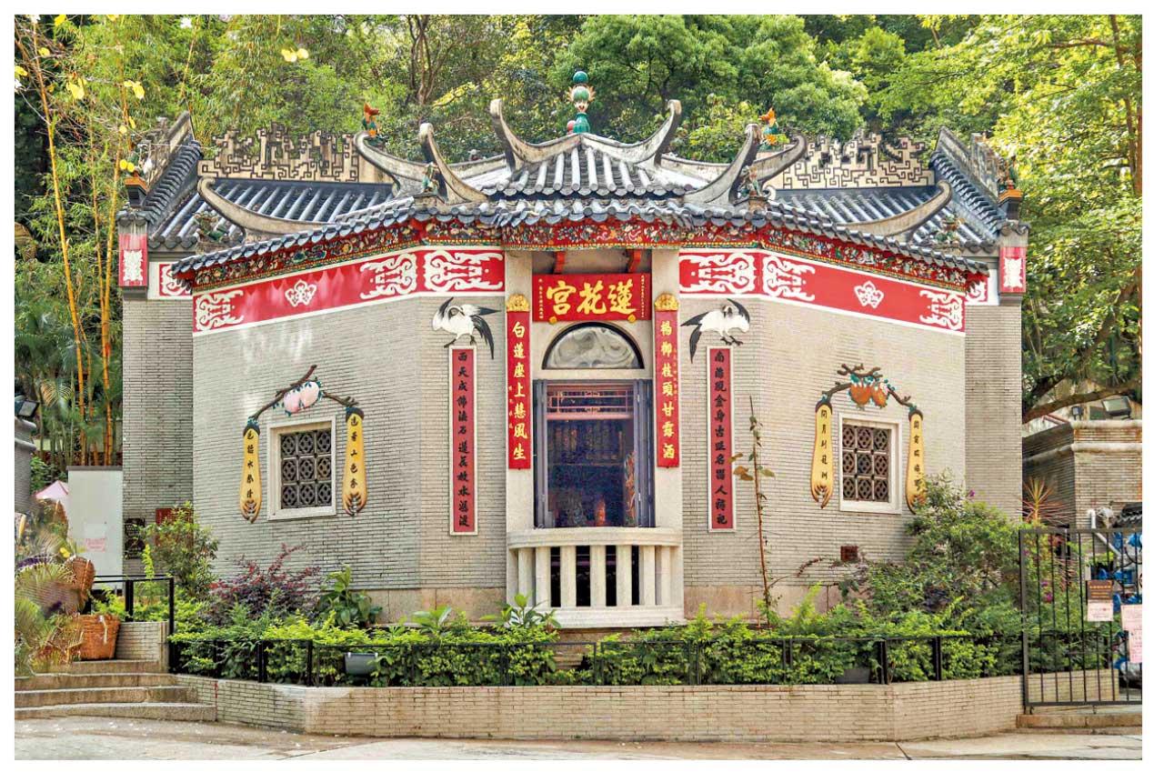 與大坑舞火龍密切相關的歷史建築,不得不提於2014年列為法定古蹟的大坑蓮花宮。建於1863年的蓮花宮,是港島區歷史最悠久的觀音廟,建築非常獨特,與一般傳統「兩進一天井」布局的中式廟宇不同。蓮花宮的前殿呈半八角形,殿內建有西洋風格柱式和拱門,殿外有小陽台,風格別致;主殿則呈長方形,依山勢巨石而建,分上下兩層,下層設石製觀音神壇,上層設木製觀音神樓;主殿正脊有佛山花脊裝飾,由佛山陶塑名店英玉店於清朝同治二年 (1863年) 燒製。