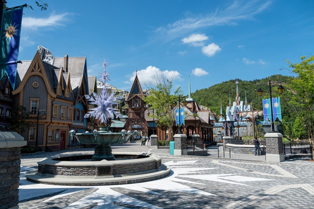 在阿德爾小鎮中,賓客將見到放有安娜和愛莎的手雕木偶裝飾的鐘樓,鐘樓更會在整點響起《Do you want to build a snowman》,彷彿回到《魔雪奇緣》中安娜與漢斯王子在鐘樓上共舞,及《魔雪奇緣:發燒狂熱》中愛莎在鐘樓上放聲高歌的電影片段。