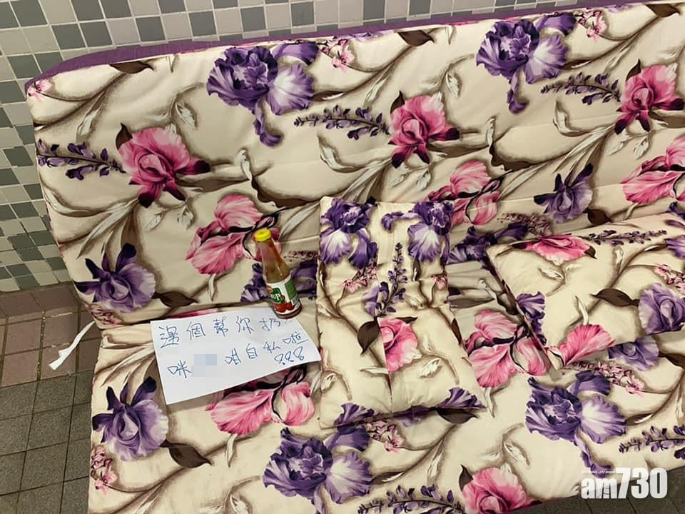 有人在梳化上留下批評物主的字條。(網民Kirsty Yam‎@FB群組「慈雲山資訊交流」)