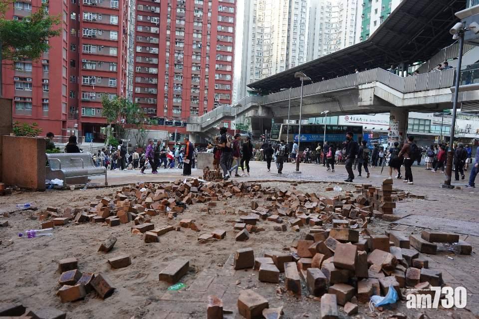 葵芳葵涌廣場外亦有人將大型垃圾桶等雜物堵塞行車路,防暴警員迅速到場,黑衣人四散,警方清理障礙物,行車回復正常。