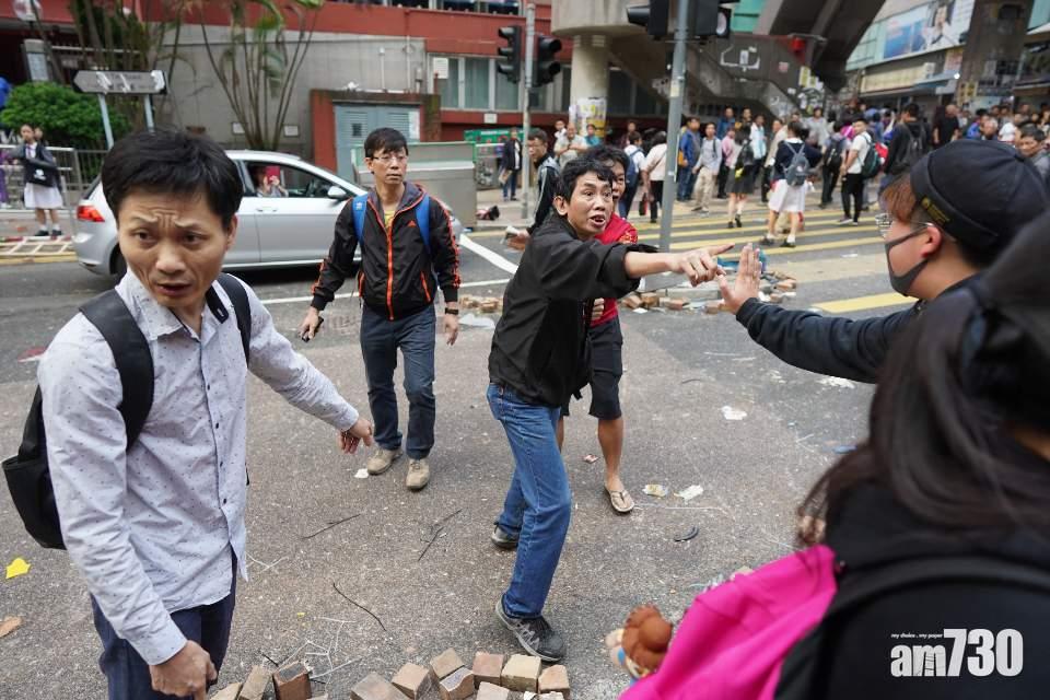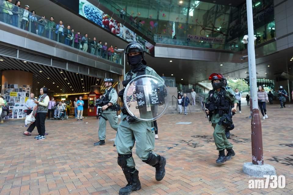 藍田啟田有黑衣人於馬路投擲雜物,引起部分途人不滿指罵,其後防暴警員到場,一度有警員將槍口指向天橋。