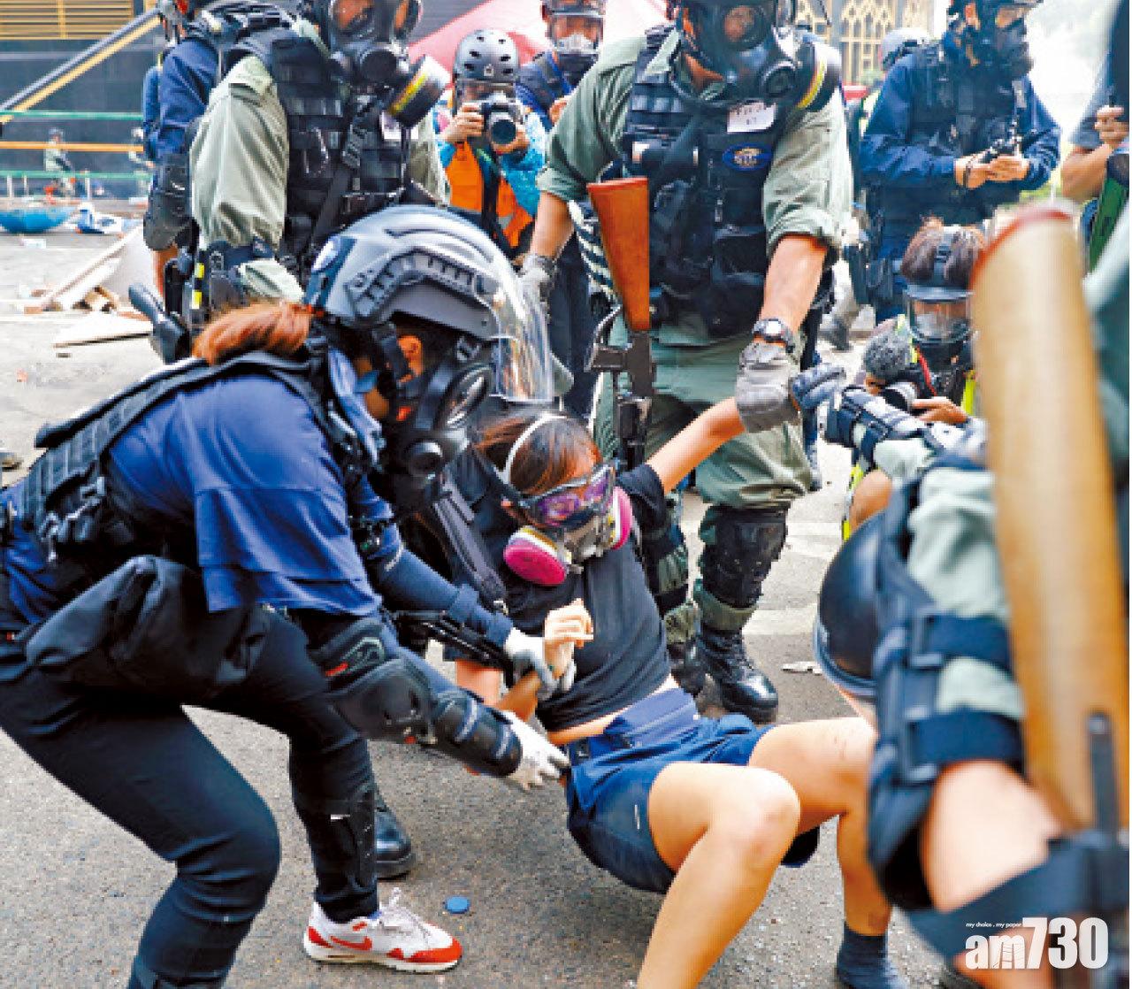 有示威者被拖行。