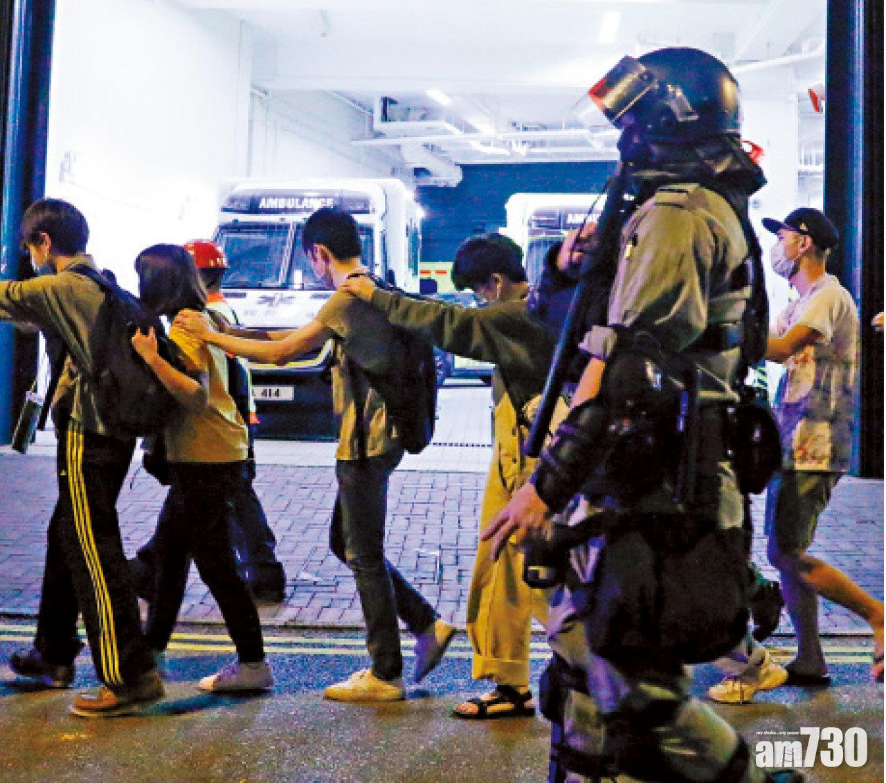 部分人士由警員帶離理大。