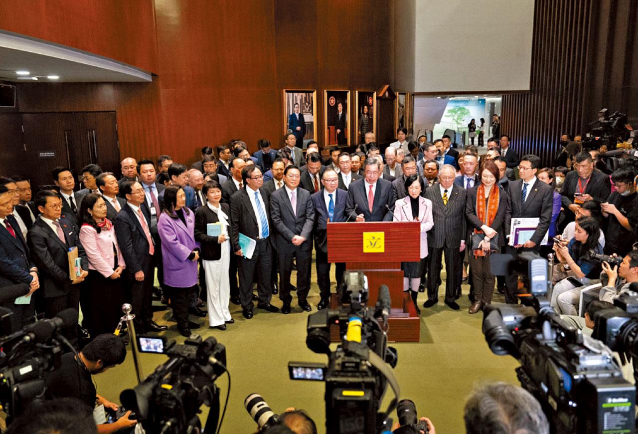 梁君彥與一眾立法會議員會見傳媒。