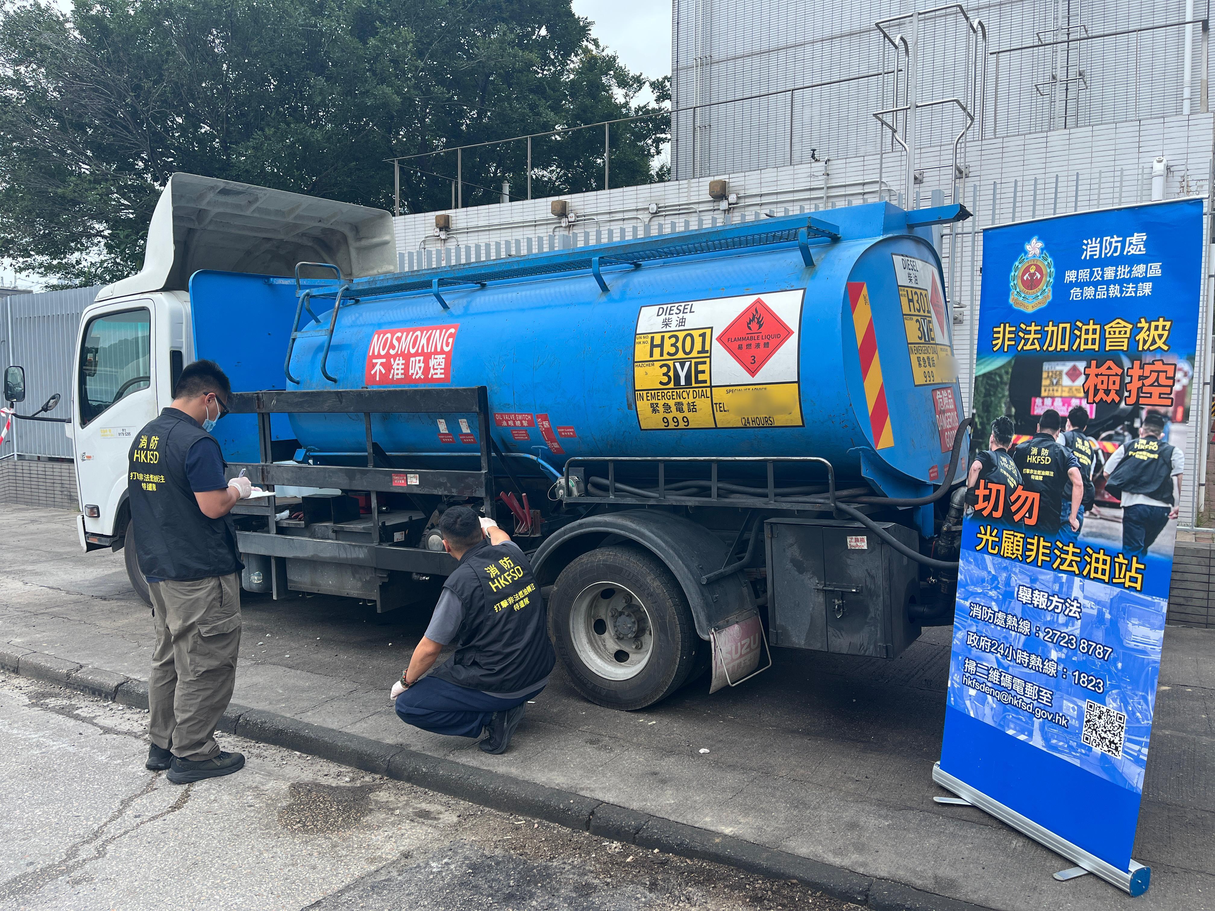 消防處在葵青區進行打擊非法燃油活動。