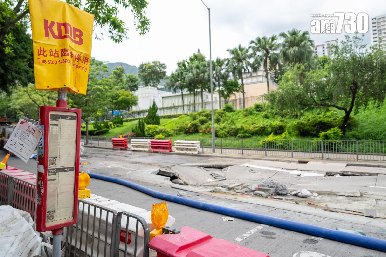 今日(2日)上午1153分,樂富鳳舞街、摩士公園對開的馬路出現路陷,路陷範圍10米乘10米、深2米,多條巴士路線需要改道。