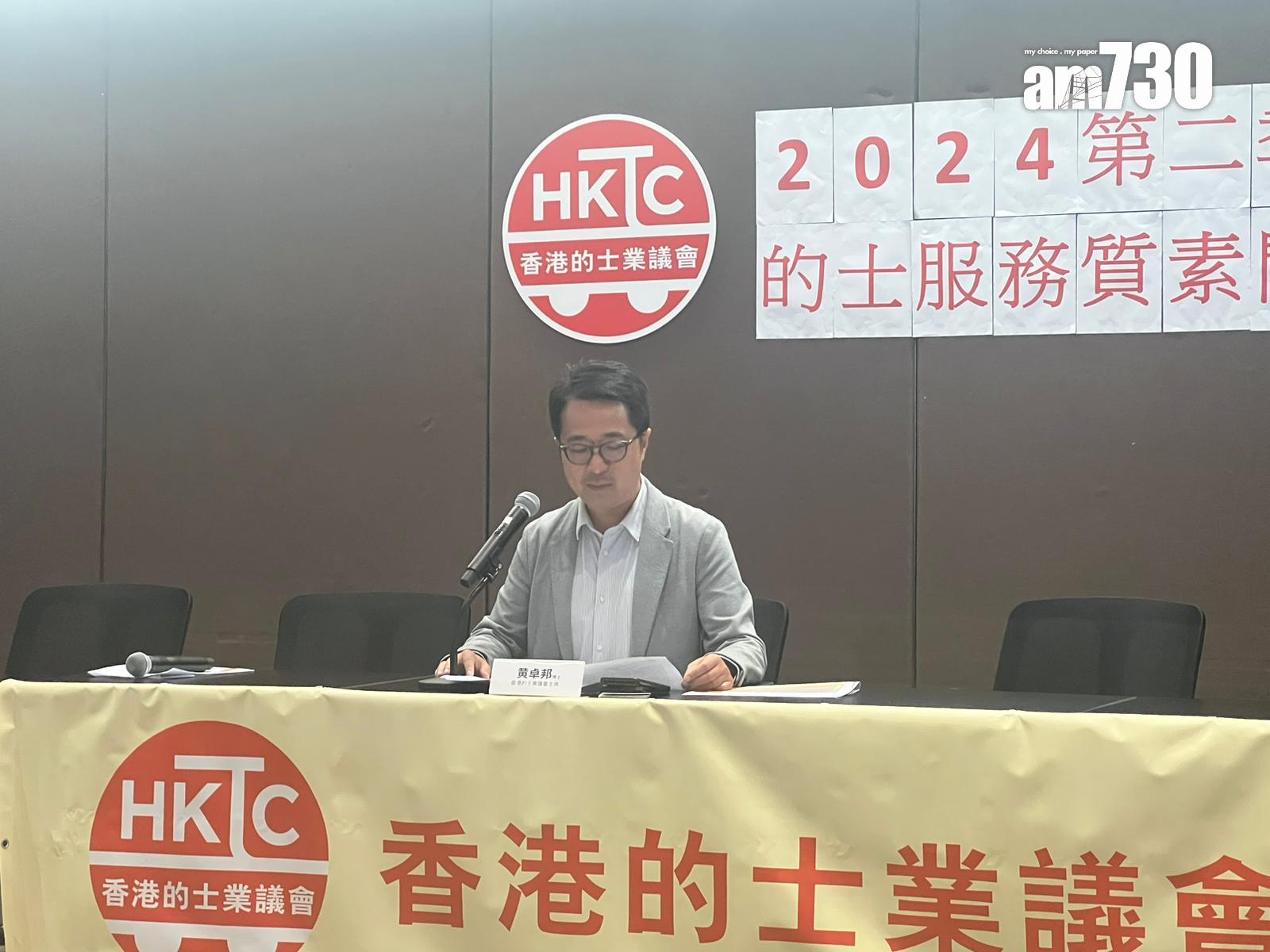 的士服務質素受到關注。香港的士業議會委託香港恒生大學供應鏈及資訊管理學系進行的調查,結果顯示香港的士整體服務質素評分平均值為58.8分(100分滿分),55.2%受訪者認為的士整體服務質素良好及優秀,只有7.6%覺得較差或極差。至於整體滿意度,則獲59.5分,87.2%表示滿意或非常滿意。就今年第二季運輸署接獲580多宗投訴的士個案,香港的士業議會認為,只是有一小部分害群之馬,倡強制所有的士裝車內閉路電視,相信措施可以有效減少投訴數字。