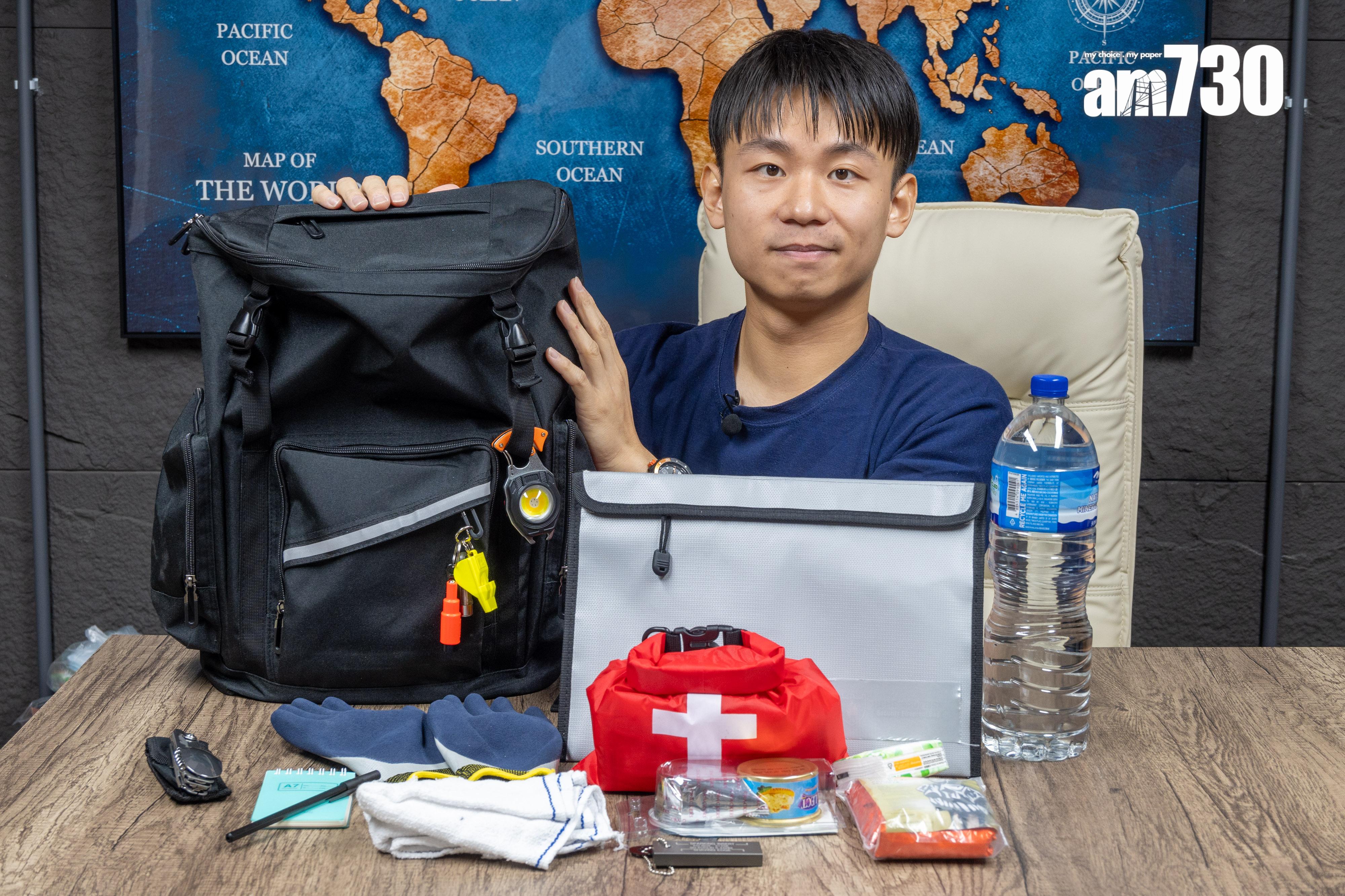 香港求生及防災協會近年積極在社區推廣防災意識,舉辦不同講座。(受訪者提供) 張清風希望在民間建立互助功能,當有災害發生時,社區會懂得如可自救或鄰舍互助。 張清風稱,事前建議準備「走佬袋」,需要移師安全位置時「一拎起就走得」。 哨子與電筒是優先求生必需品。 一般「走佬袋」應包括急救包、水、食物、防水筆及記事簿、電筒、毛巾、哨子等。