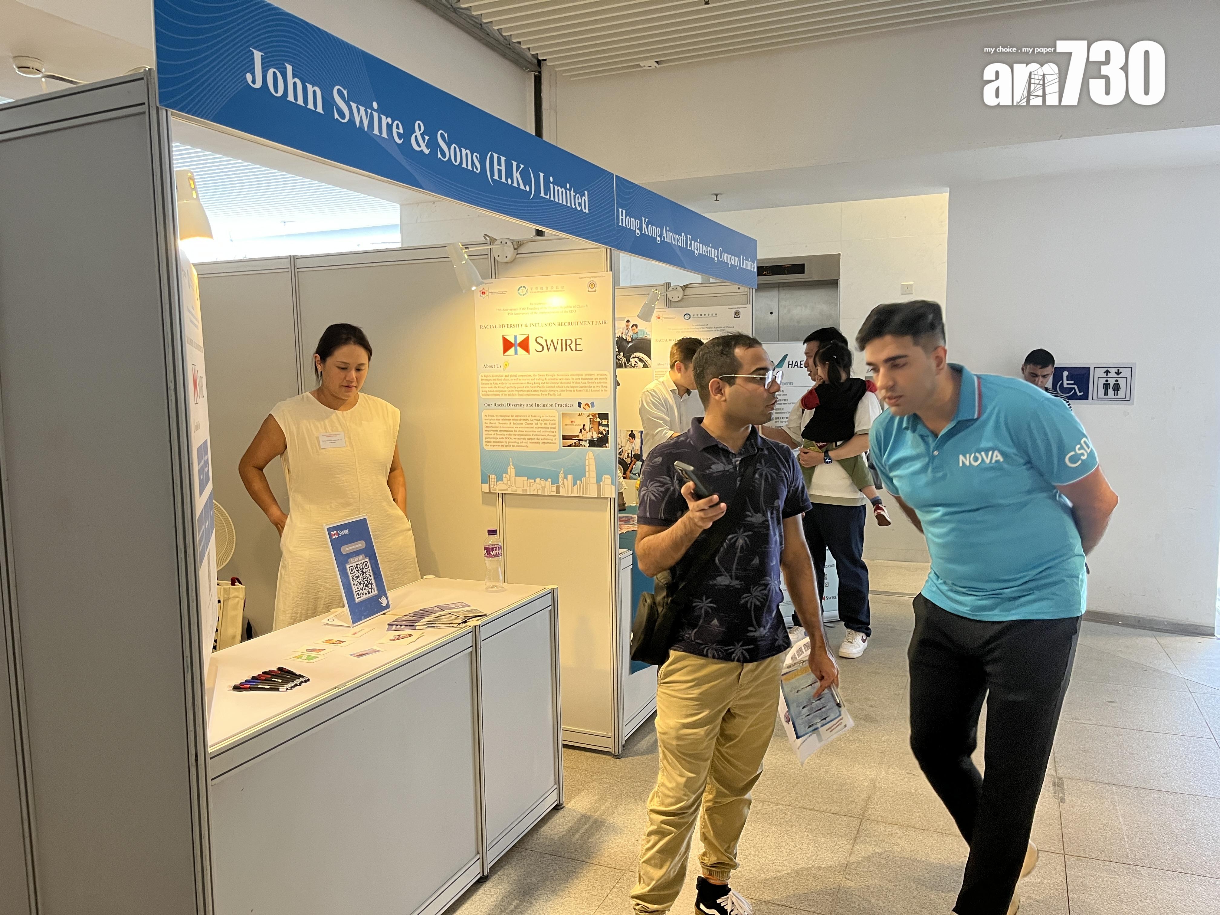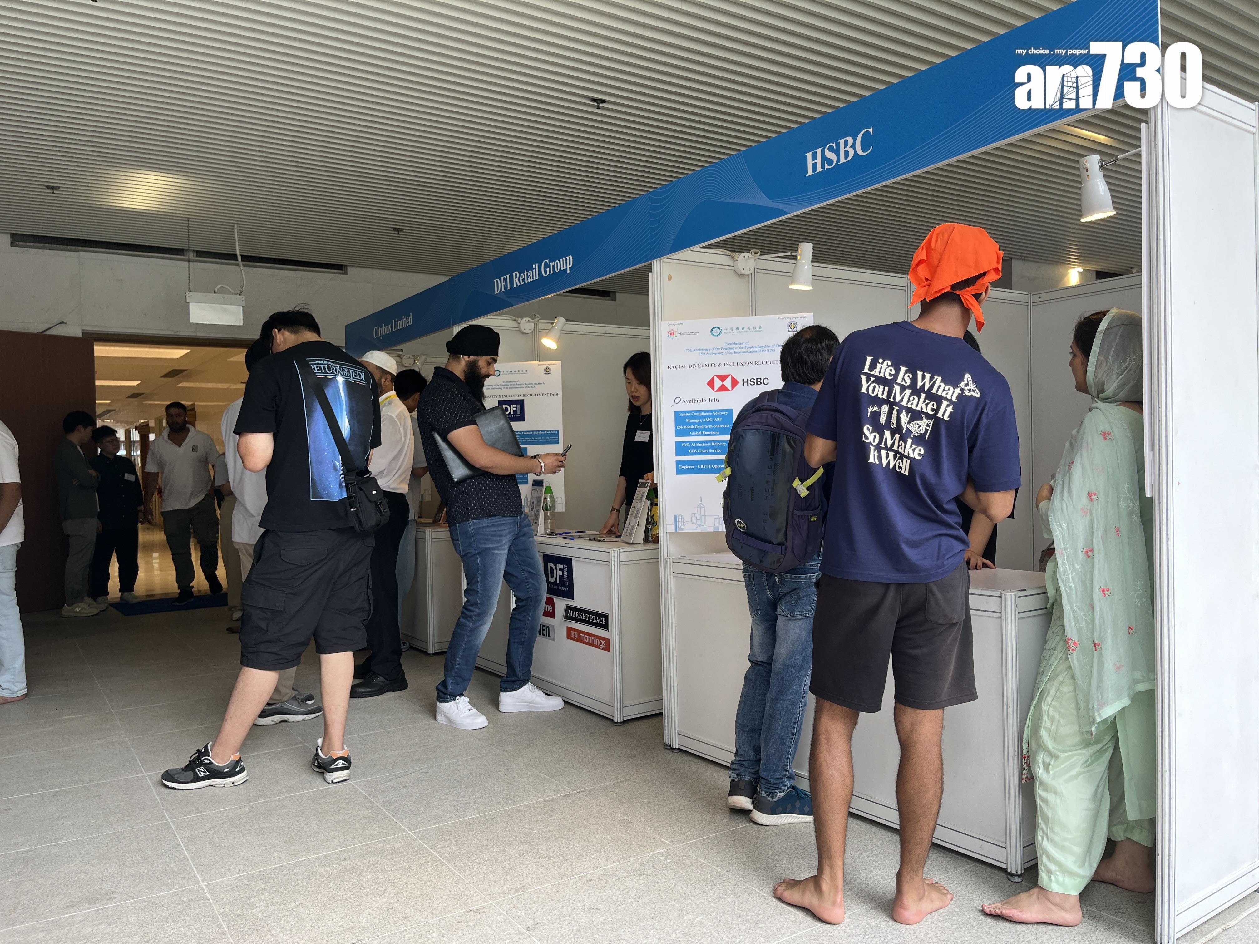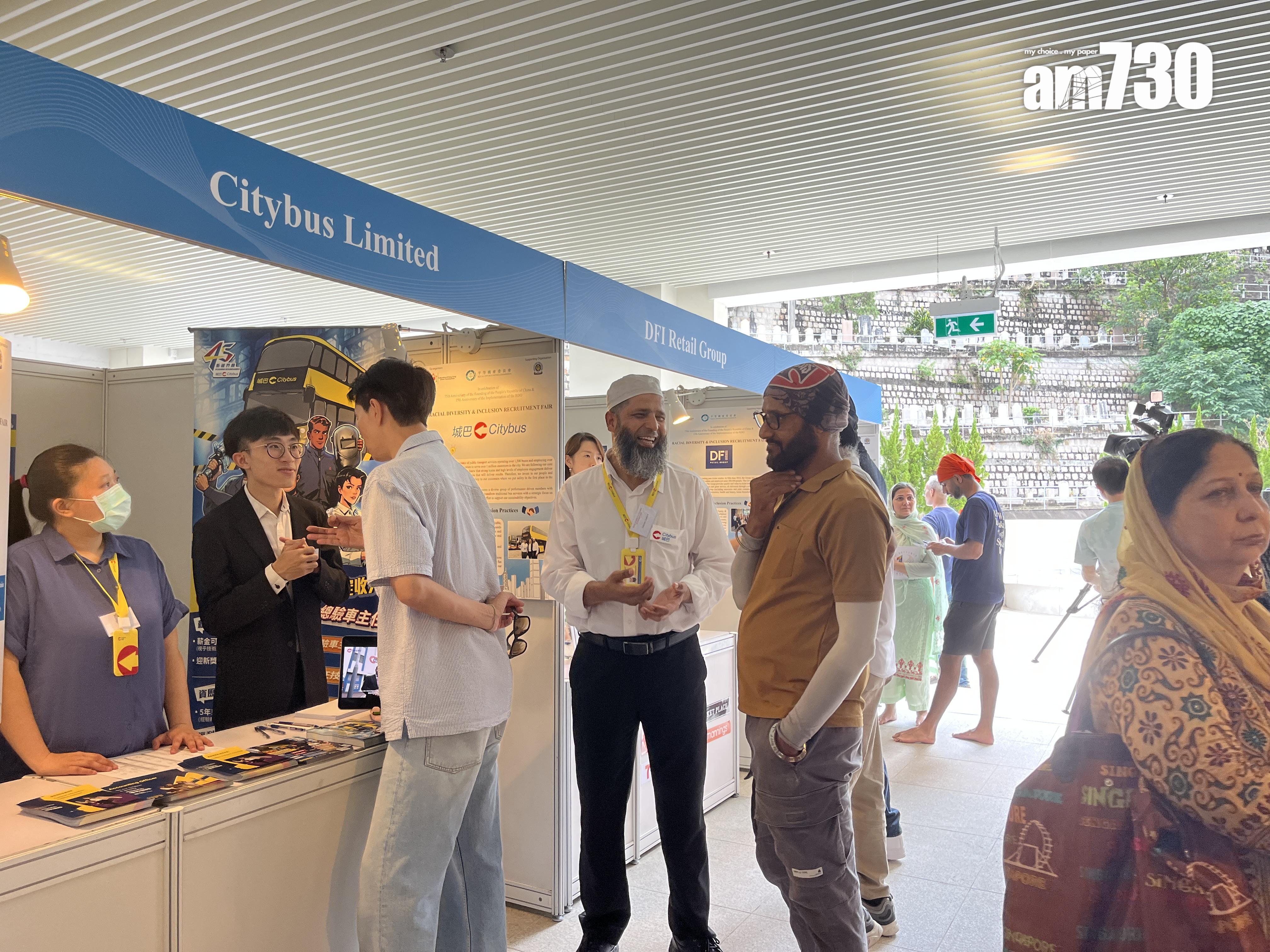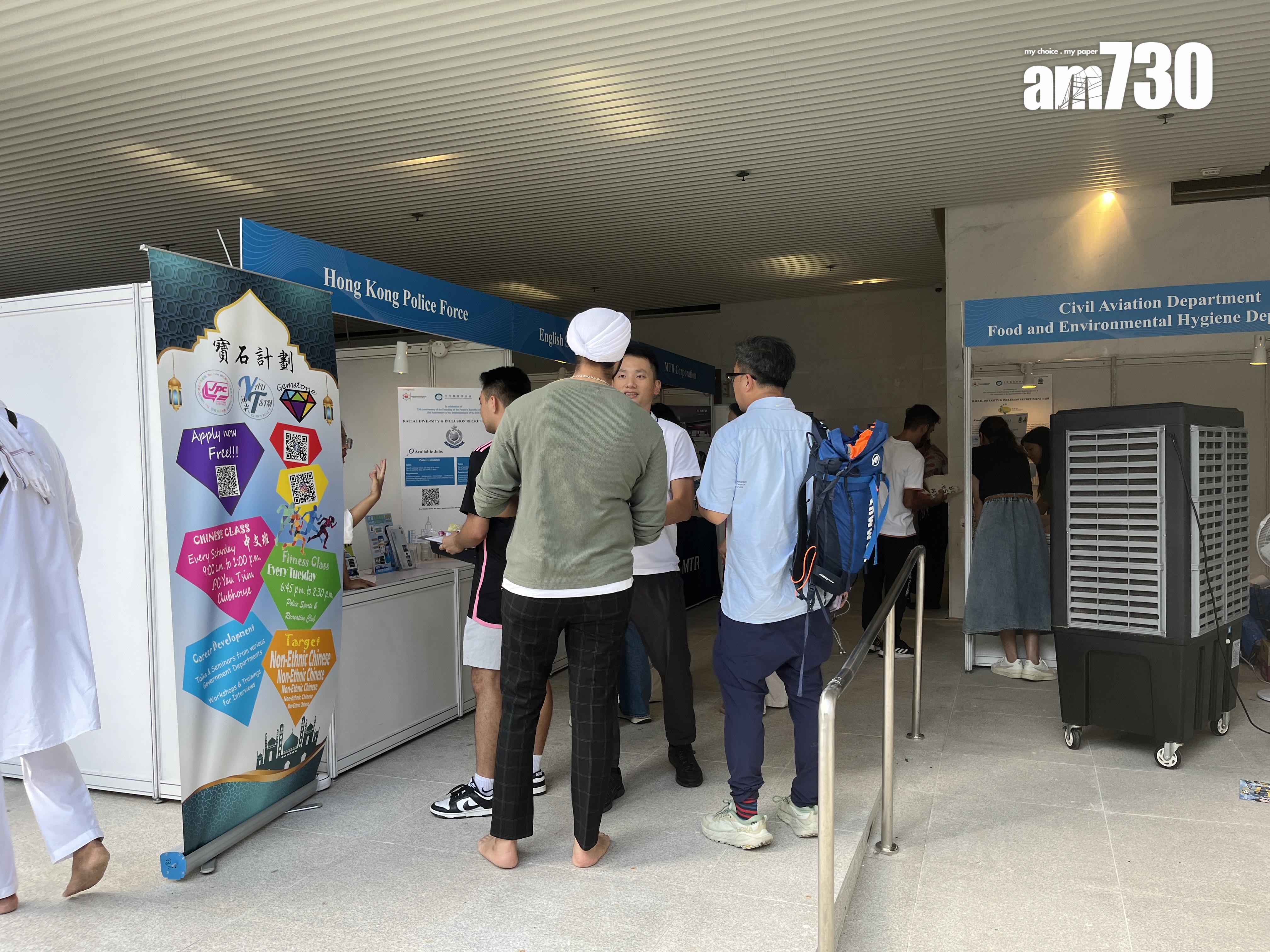 種族多元共融招聘會在灣仔錫克廟舉行,包括民航處、懲教署、食環署、消防處和警務處等5個政府部門,以及國泰、城巴、英基學校協會、滙豐銀行等11間企業在場設攤位,提供逾500個不同資歷要求和職級的職位空缺,涵蓋主流前線工種、會計、工程及教育等範疇。大會亦安排人事顧問公司為求職者提供一對一就業指導、教授撰寫履歷的技巧。
