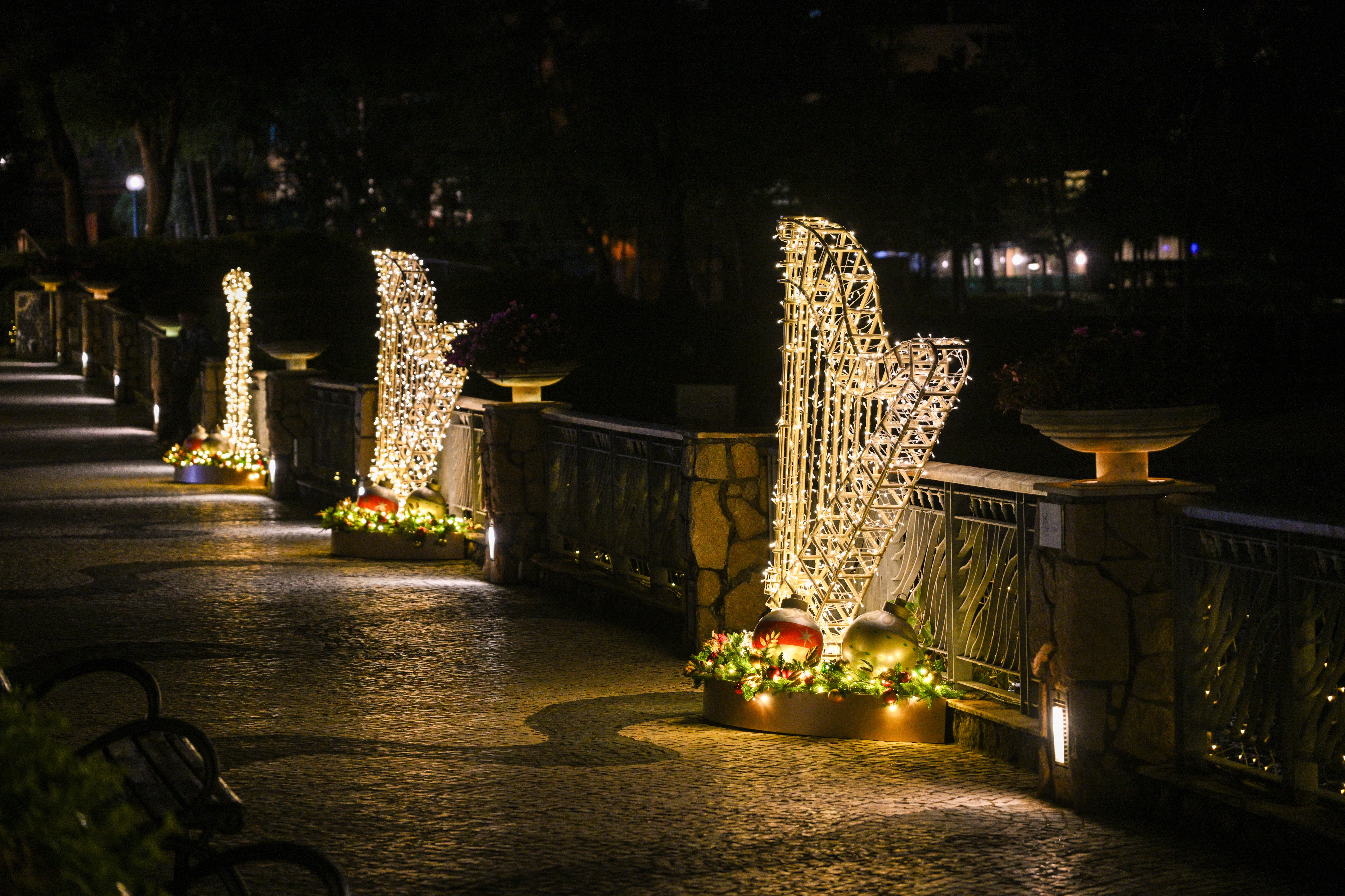 在愉景灣的慶典中,最引人注目的莫過於愉景北商場的鐘樓,它將化身為威尼斯的「安康聖母大教堂」,裝飾靈感源自巴洛克建築風格,讓遊客仿佛置身意大利街頭。燈光與大運河主題裝飾交織;貢多拉船裝置無疑為聖誕氣氛增添浪漫。夜幕降臨時,燈光與飄雪效果更使鐘樓成為拍照熱點!