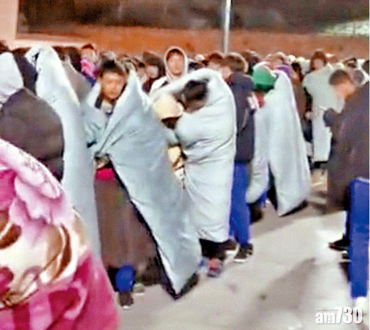 返回 本地 出版:2019-Oct-29 05:00 更新:2019-Oct-29 05:00 甘肅5.7級地震 毀235屋暫無傷亡 分享: 甘肅甘南州夏河縣昨凌晨1時56分發生黎克特制5.7級地震,震源深度10公里。省政府指,截至昨午近12時,夏河縣及毗鄰合作市有234戶受災,暫無人傷亡,235間房屋受損或倒塌,逾3.6萬人緊急疏散。內地傳媒報道,許多居民被震醒,裹著棉被到攝氏0度以下的室外暫避(圖)。 對岸同日亦有地震,宜蘭縣近海昨早7時28分發生4.3級地震,花蓮近海則分別於早上10時21分及11時24分發生3.1級及3.3級地震,同樣暫無人傷亡。 ADVERTISEMENT